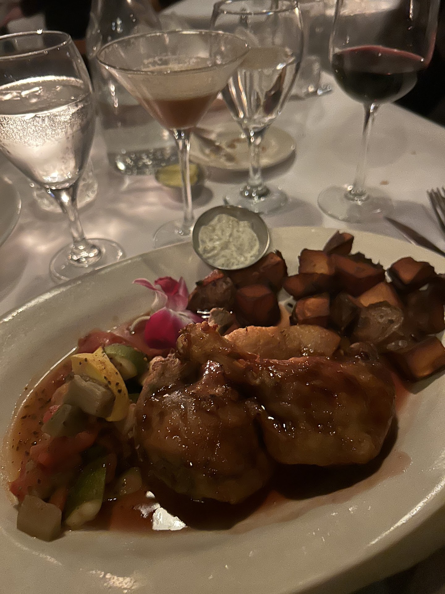 I'm not sure that there have been many iterations of the menu or chefs but I have hard time understanding how this place has high reviews. I thought the food was awful. My only theory is that either prior patrons are enamored, dare I say delusioned by the reputation of yesteryear's French cuisine, or I'm completely crazy. I do accept I may be biased and it could have been an off night. I am 45 yrs old, well travel and now understand why old people complain when food isnt up to par because its hard to enjoy something distasteful when you have had good food historically. I could tell that food was prepared to specification and cooked to correct temperatures however the combination of seasonings, along with poor salting and excessive cream/butter made the food distasteful. I had the Escargo; over buttered and under seasoned; temperature was perfect but no taste. The salad was wilted and looked like someone grabbed a handful of mixed greens out a plastic square package and just laid it on a plate. Maybe spray it with a mist of water in the morning to hydrate it? The Duck Confit came in a raspberry dressing that I thought ruined it to sweet and overpowering. Same raspberry sauce was used as an optional salad dressing. I also thought the breast was overly flattened with a flattening iron and had a nice sear but was dry with respect to humidity but drenched in overly sweet raspberry sauce that was somehow overly buttered / creamed as well. My French 75 came out room temperature. Warm champagne sucks; anything fizzy should be cold....think of hot coca cola. Ambience was really nice. Waitress was attentive and nice. Tipped her well with cash. Not her fault. Seating was fast. They were at about 80% capacity and were well staffed so the flow and turn over was solid. I don't know how to help them. Again, it seems to be that the menu somewhat follows to French standards. Portions were adequately sized. I'm sorry I usually don't give negative feed back. Maybe have a few folks that have never tasted French food try it to see if they like it and provide neutral feed back in a private tasting. Good food is good food, a...