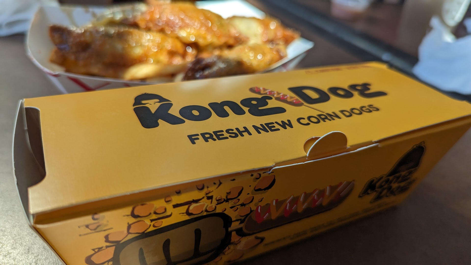 Went back the next day and got 2 Kong Dogs. This time there was still only three people working but there was only one person in front of me. Had the spaghetti and Cheeto dogs with cheese filling. They were delicious. It took 20 minutes to get my order of 2 dogs, fries and lemonade. They also have no trays so if you are by yourself you have to carry everything at once or go back and forth to the table. So the service is terrible but the...