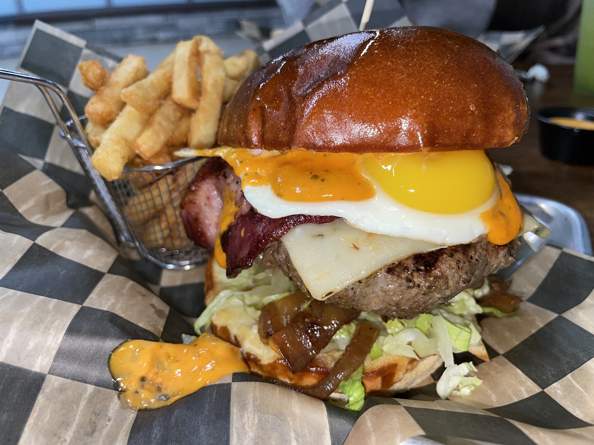 We love the Angel Falls burger and the chicken quesadilla. The burger has excellent seasoning on the patty and the beef bacon +sauteed onions + homemade sauce make for a delicious combo. The quesadillas are 🔥, the chicken has great flavor and we recommend including grilled veggies in it. Also recommend the house made harissa sauce on the side!