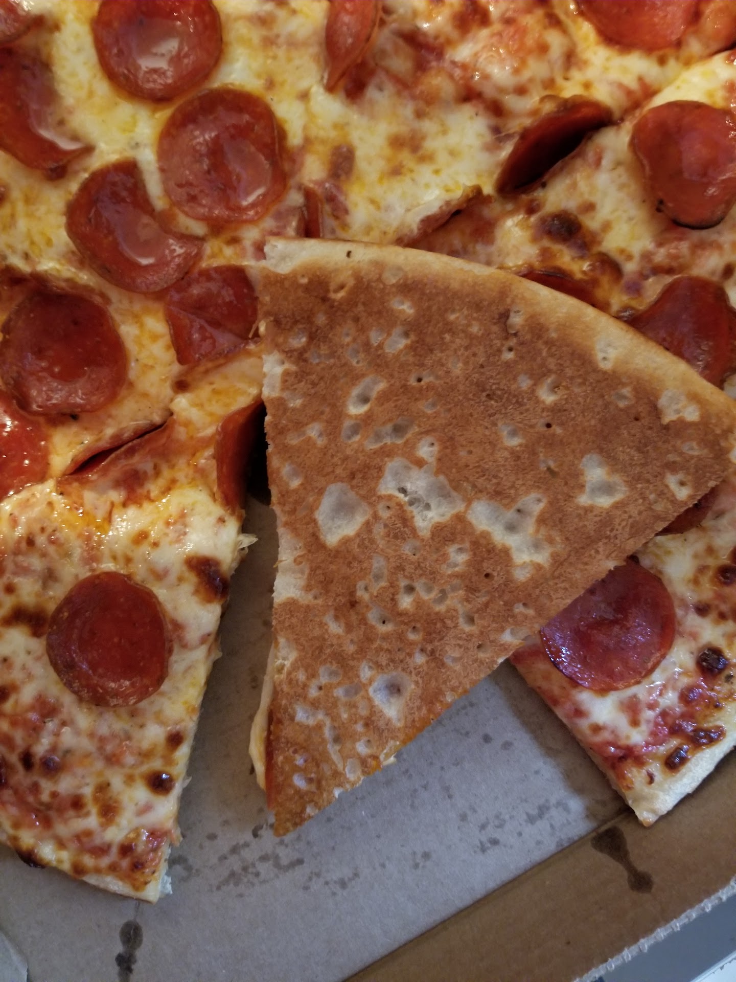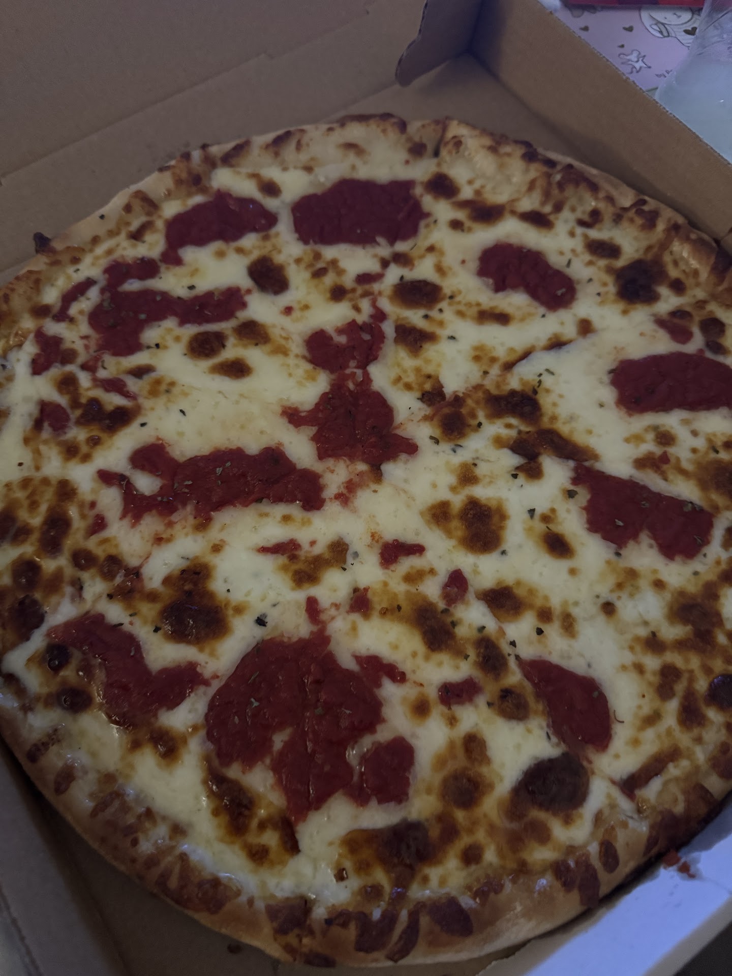 Ordered an XL (it's the rectangular size) cheese w/their old school Italian sauce & a large pepperoni half pineapple w/the same sauce. Price was reasonable, delivery came way way faster than the slice app said it would which absolutely shocked me & I feel bad because apparently the delivery driver didn't see where I checked off for them to just leave it at my door. She called me like five times & I wasn't able to get to the phone right away. Whoops! At least I gave a 15% tip prior (which you should always do!). Ok on to the pizza.. The crust is excellent 10/10. It almost tastes like they rub the pans with garlic butter or oil? Old school Italian sauce was really good but just a touch too sweet for my taste 8.5/10. The cheese was too much & I mean like they could've put 1/3 the amount & it would've been perfect! Not only was it super difficult for us to chew & swallow, but it made everything a super greasy mess. If you love extra extra cheese, you will be so happy,but I don't so 2/10. The pepperoni was great, good flavor, not too spicy, perfect amount. Pineapple was typical canned tidbits, & they put way way too much & also covered more than half the pizza with it. Whoops. It was still a good pie! I would order again but would need to ask that they use a third the amount of cheese. I mean dang, cheese is expensive & you could save your business a pretty penny if you scaled back a little on that cuz it's wildly ridiculous how much you use! I give the rectangular cheese 7/10 & the pepperoni 1/2...