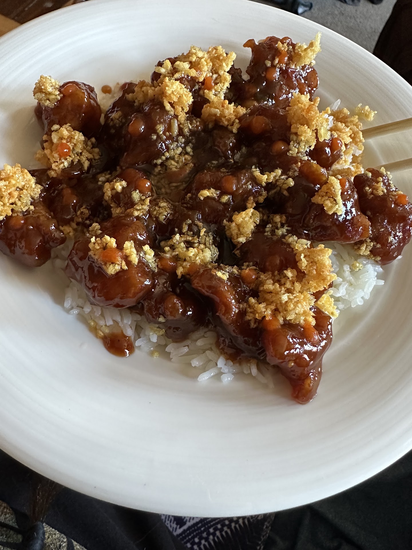 I ordered the general tso for $10 combo dinner with fried rice and an egg roll. Average size take out box. Okay chicken to rice ratio. Okay amount of sauce. Atmosphere of the restaurant itself is not so great, I recommend take out or delivery vs dining in for sure. Overall value I say is okay. Was crispy, well cooked. Definitely oily. Was not a big fan of the egg roll. Wouldn't say it was the most flavorful or best general tso I've ever had. Service was rapid and friendly. Would I order here...