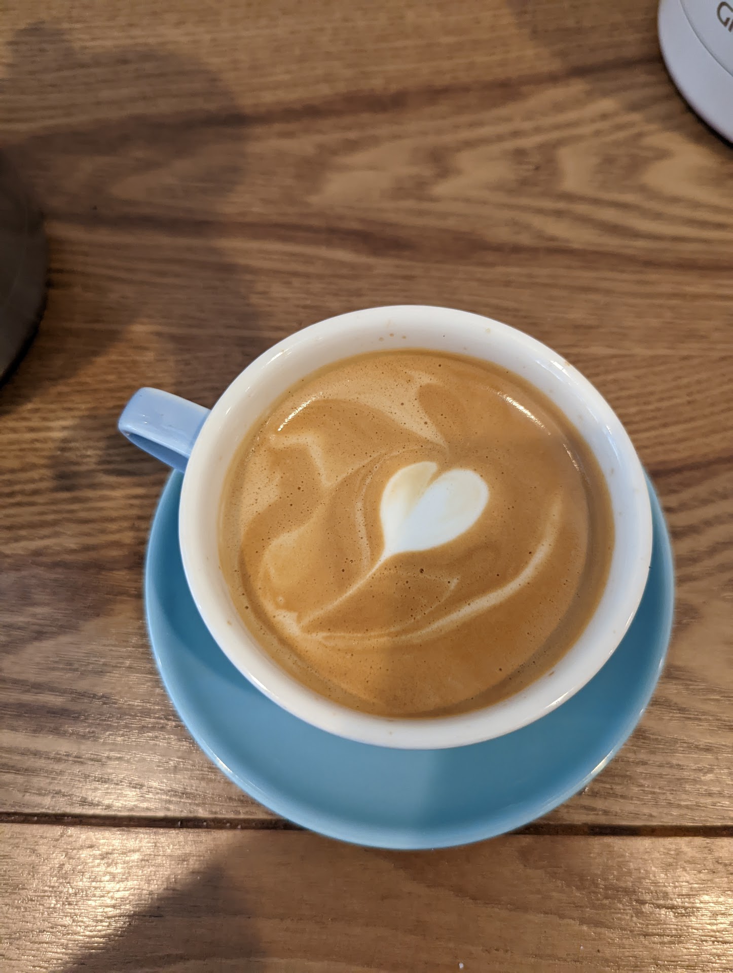 SOME POSITIVES Ultimately, to our surprise, the cortado tasted good. Also, on another positive note, the space was/is attractive, both outside and in, and well laid-out. The setup outside with the wood looks tremendously alluring and cozy.