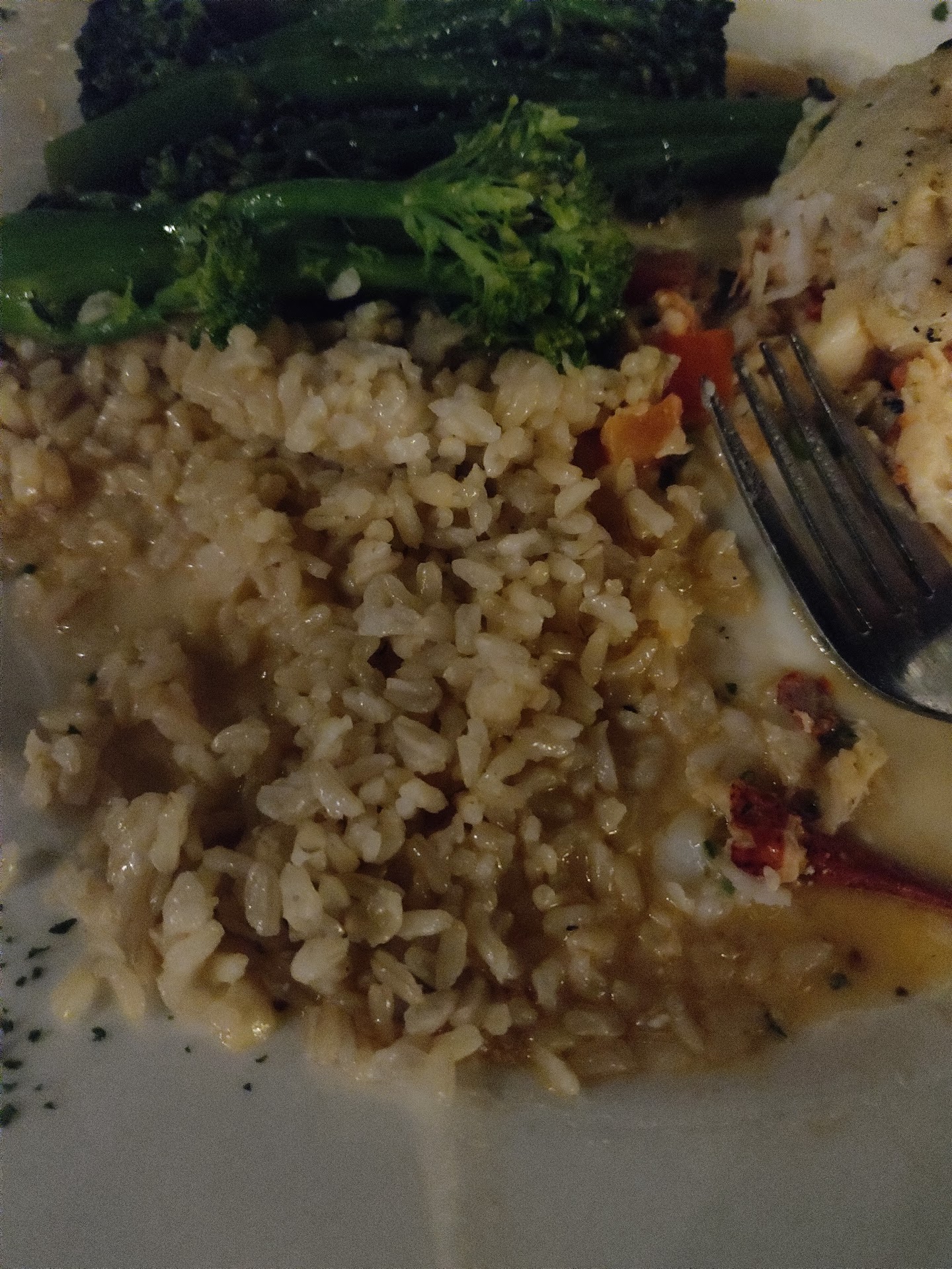 Read moreThe bill was approx $120 for 2 and I honestly can't say that it was a fulfilling meal. The place seemed buzzy enough with lots of people still dining at 8.00pm-ish , so we decided to have our first night's meal there. My glass of prosecco came without any bubbles and I sent it back. I believe they said they'd open a new bottle for me, but this glass too was flat but tasted a little more Prosecco-like. I didn't send it back because I didn't think I'd get lucky the third time around! The house salad was good. I ordered the Lobster and Sole Roulade served over brown basmati rice. The rice was NOT basmati in my opinion. I am from India and can recognize the aromatic, delicate tasting, long-grained basmati rice anywhere. Brown basmati is less aromatic but still similar to white basmati in many ways. My Jamaican server however insisted that she'd seen the packaging and it was basmati -- she was such a lovely, pleasant person that I didn't want to be boorish and and argue with her asking her to prove it. However I have attached a closeup of the rice -- basmati is long grained while this was not. Maybe there is an American hybrid short grained version I know nothing about. Overall, rice notwithstanding, the lobster was fresh and tasted decent enough. My husband ordered the Lobster Ravioli and he liked it. His margherita was so-so and he didn't order...