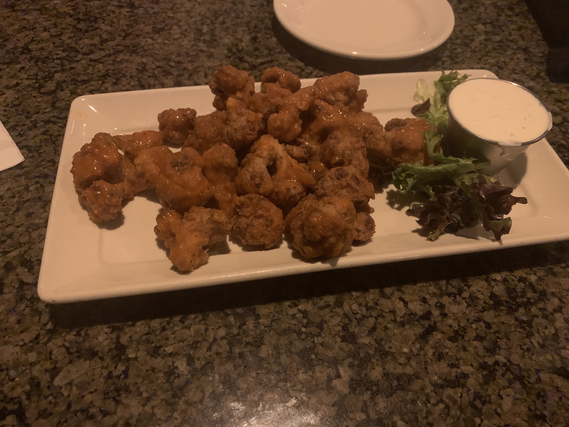 Crispy cauliflower, lightly battered and fried tossed in our homemade mild sauce Served with bleu cheese dressing