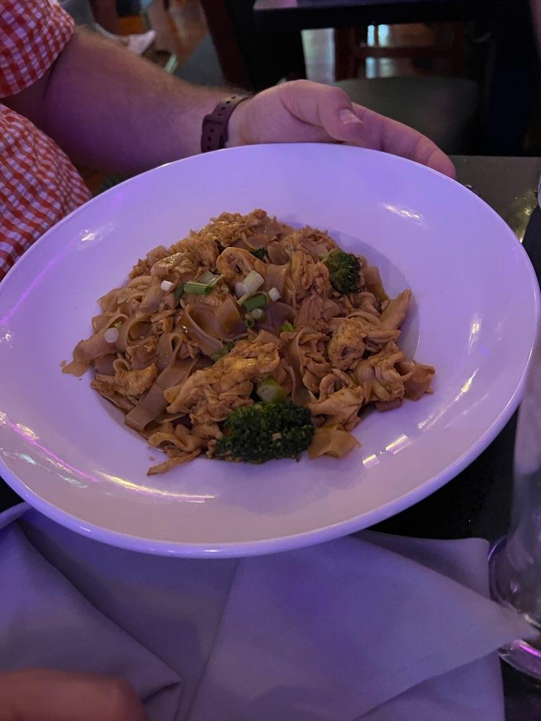 Read moreThe general tso's was crispy, but it had little flavor other than "sweet". The pad Thai was extremely egg heavy, the pad see ew was supposed to come with thick rice noodles and vegetables, but there were only a few broccoli spears amidst the plate of salty yet cloyingly sweet fettuccini. The Thai basil with chicken was ok but very salty. Interesting take to blend the basil into the sauce rather than add it straight to the dish. Our soup appetizers were ok. We kept hearing the characteristic "beep beep beep" of a microwave and we joked they were heating our soup up, then moments later the bowls of warm (not hot) soup came out. Even if they were microwaved they were tasty. The martinis were boosted to be the biggest around, but when they arrived they were normal sized. The flavors were unique and fun, but the only thing that was large about them was the price. Definitely have sticker shock and honestly buyer's remorse. Also...$6 for a glass of diet Pepsi? Still a little stunned by that. The service was good, no complaints there. I don't remember the price of a side of rice but the small ½cup of rice that...
