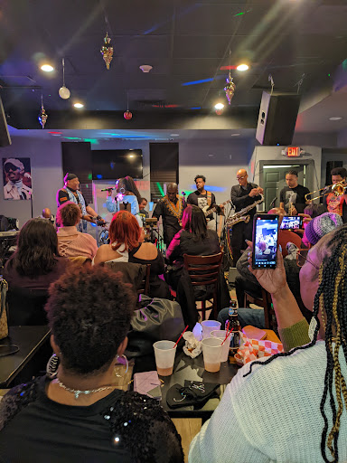 Ā Ā Ā Read moreMy Sunday night place to be. Great people all united as one nation under a groove encapsulsed in a live, music loving atmosphere.The Band, "Midnight Sun" is one of the best cover band's you will ever have the pleasure of witnessing (Girl scouts honor). They seem to know all the back in the day ...side A and also side B record covers. Dare you to call out a song in the genres of which they play and they dont know it. Rare at best. They seem to have every song under the sun in their musical goodie bag. I don't drink so can't share with you whether the prices on that are reasonable or not? But I can say, price to pull up in there on a Sunday night are more than fair for the high level of entertainment you get. As you watch and listen to Midnight Sun perform, you will feel like you have been invited to an up close and personal live concert, all while being blown away by the band's sic collective skillsets-as they play all your favorite old'skool and some new school too. And you just never know which 'on the road musicians' will stop in to bless and sit in with the band. Lots of Supercalfragelistic- Hyberbolicsyllabicsesquedalymistic talent on blast and a whole other level up in that place :) Both thumbs and all other 8 fingers way way...