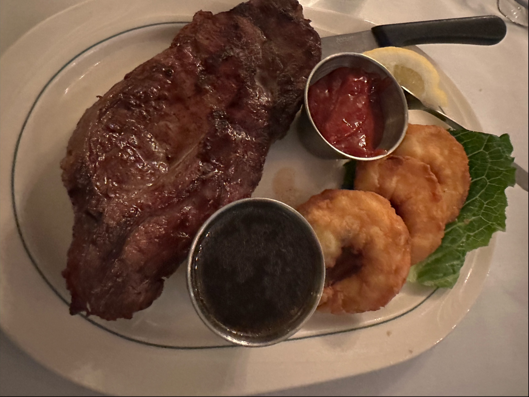 On the filet, it was burned on the crust and had zero seasoning, not even a hint of salt or pepper. The lobster was decent, nice flavor but that's the only saving grace. But the price was outrageous. We understood it was a local family-style restaurant, and the dinner option (comes with soup, salad, and potato) was fairly decent, but the quality and taste of the steak did not live up to the recommendation we received for the place.