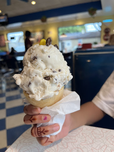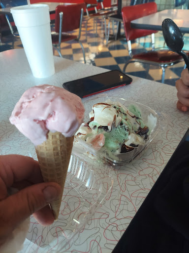 Ice cream shop with an old-fashioned decor style scooping treats such as sundaes, cones & shakes.