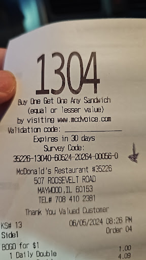 Read moreAs a former McDonald's employee, this location has to do better. I've been here several times and unprofessional seems to be deeply rooted. On today's visit, it took for me to say, "hello" to finally get a crew member to greet me and take my order in the drive thru. Once my order was taken, nothing appeared on the screen, but I was instructed to pull to the first window. Once getting to the window, I was given my total and after payment, I was not provided a receipt. Once getting to the second window, I was handed another customer's order. When I explained it was not my order, I was asked what was my order. After spending 3-4 mins at the window trying to get the correct order and a receipt to confirm what I paid for, I was informed I couldn't be given a receipt and then was approached with a hash brown in a brown napkin. Finally, I just asked for a full refund and left the location. Will not be returning and I asked that the corporate office look into this location because after I pulled off they provided the order that I was mistakenly given to the correct customer behind me. Unprofessional and unsanitary, especially during the...