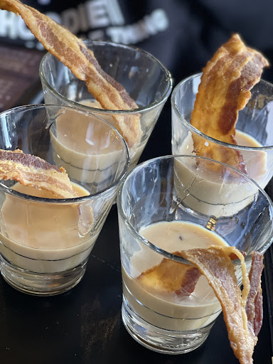 My wife had a mule (I've forgotten the name) and I had their Smoked Old Fashioned. It was a bit sweet because they used Smoked Maple Bourbon. If you're a bourbon drinker you'll know who's brand that is; they're the only ones with such a flavor in wide distribution. As an added bonus there were three strips of bacon! Both drinks were very good and unique.
