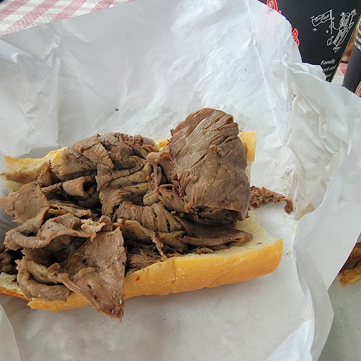 I got the original italian beef, with a jus on the side, cheddar, jalapeños, caramelized onions. It was good!! I wasn't expecting the bread to be soggy. I thought it was going to be a stronger baguette. Nonetheless, a great ratio of ingredients, tender beef, sweet onions, mild cheese, good sandwich. The fries are DELISH!! They were salted to perfect, a great balance of snap and chew, so freaking good.