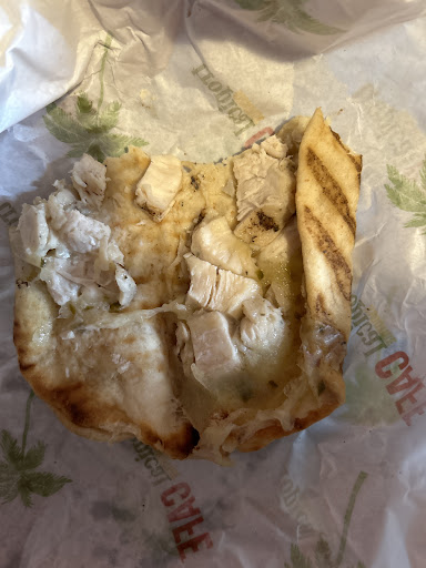 The Chipotle club thing comes out...bland soft pita bread, pre cooked bacon and other ungodly fillings. This place might give a vibe of healthy eating, make no mistake it can't be. Somehow the staff mistakenly made 2 of these and left it for us at no extra cost. Unfortunately it was so bad I don't think anyone will eat it. That said we also got a free bag of Mrs Vickie's BBQ chips, they can't screw those up, I hope.