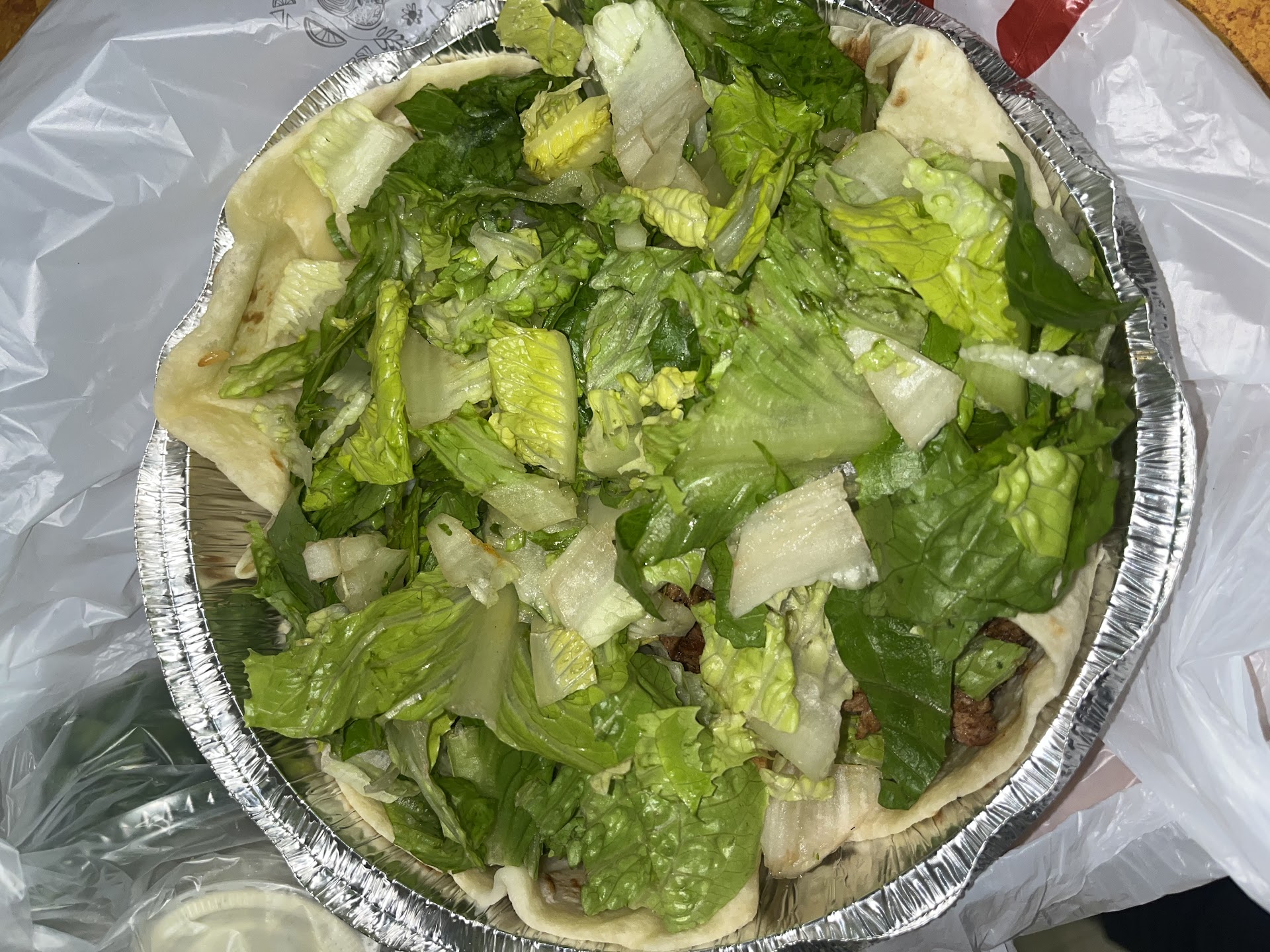 7/24 Tostadas come with shredded lettuce now and salads come with coarsely chopped lettuce. They put guac on the side when it is to go. The drive through lady isnāt very nice.