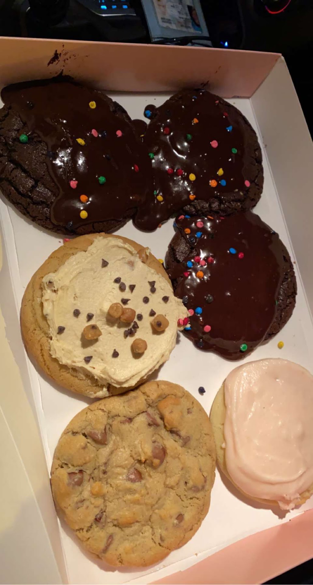 Read moreI've never had any issues with ordering or customer service. I always go with the curbside option and my order comes out within 5 min or less. Always. All in all crumbl has a better base dough that's more flavorful and substantial than CHIP's. My eternal gripe is their prohibition against semi-sweet chocolate. Those of you who have reviewed that Crumbl's too sweet...this is 100% due to milk chocolate being used instead of semi-sweet. Milk chocolate makes the whole ensemble ghastly, sickly, sweet.