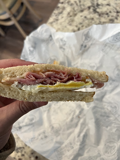 Read moreI went to Great Harvest Bread to try some sandwiches a couple night ago. I love a place that makes fresh bread. The store just smells amazing. Another sweet thing about placing an order is while you wait, they have a couple loafs of bread from their selection that day and they give you a nice thick slice of bread. I decided to try their cherry chocolate bread with some butter and honey. Wow! This loaf is amazing. Honestly it was so moist that it was on the border of cake. I ordered a turkey pesto panini on white bread and a sausage, egg, and cheese breakfast sandwich on cracked wheat bread. I never thought to dip a turkey pesto panini in some balsamic vinegar, but that was a nice sweet/tang to the sandwich that gave it just the right kick. The cracked wheat bread for the breakfast sandwich was also really good. I'm not a cracked wheat fan, but Great Harvest definitely changed my mind about that. If you like great freshly made bread, this is the place to be. Definitely go check them out and remember to support your local businesses. 😁🤙