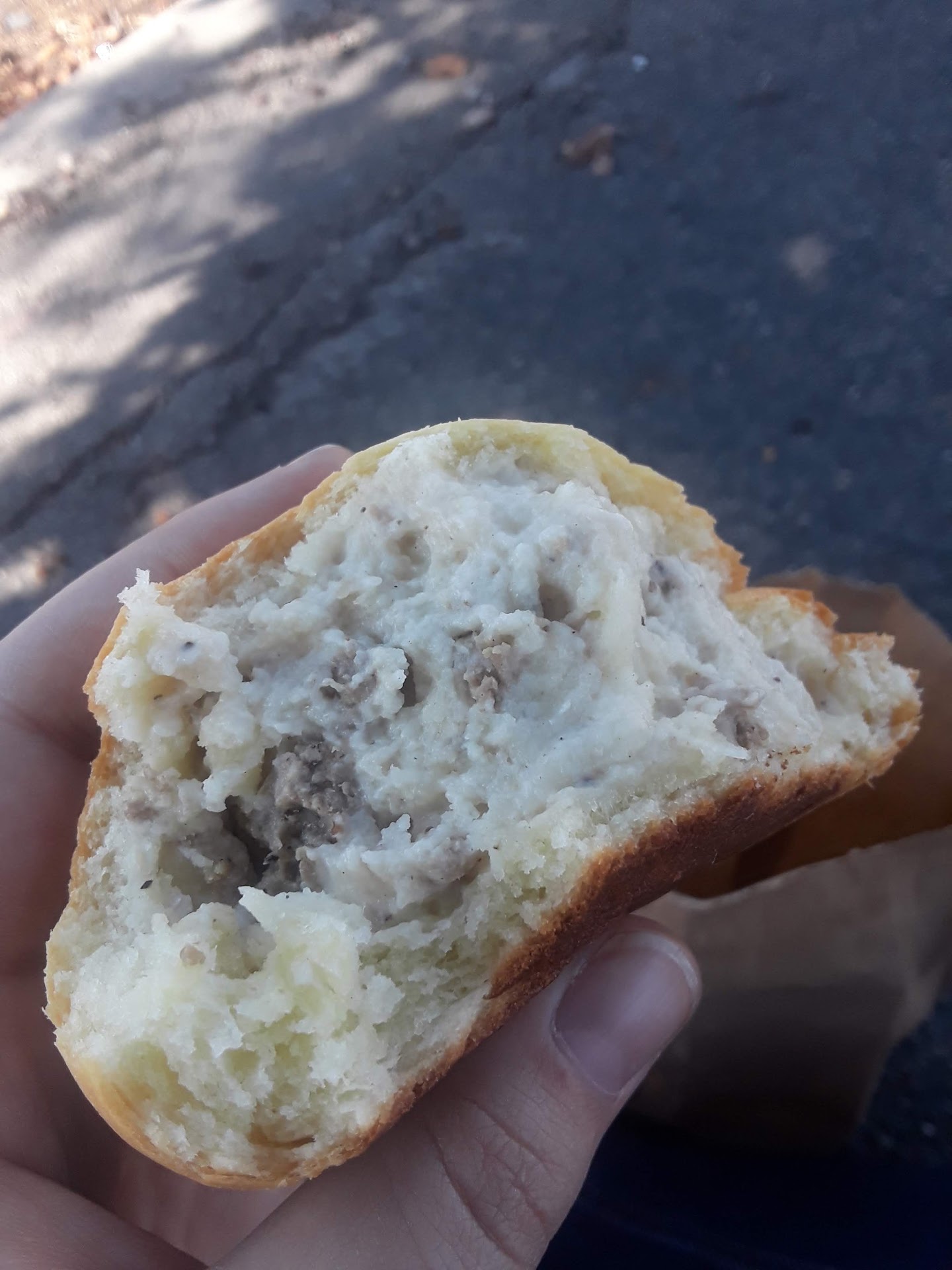 They offer sweet and savory Kolaches. The sweet ones are tasty, but the savory ones are my absolute favorite. They are super filling and it's like getting a whole meal in a convenient, portable bun of goodness. I have tried every savory flavor and they are all good in their own way. However, if you want to knock your socks off, try the pulled pork and the La Bomba Carnitas (the carnitas are only offered on Saturdays). They are AMAZING! They sell out fast, so get their early. I also love sausage gravy one and the egg, cheese, and ham.