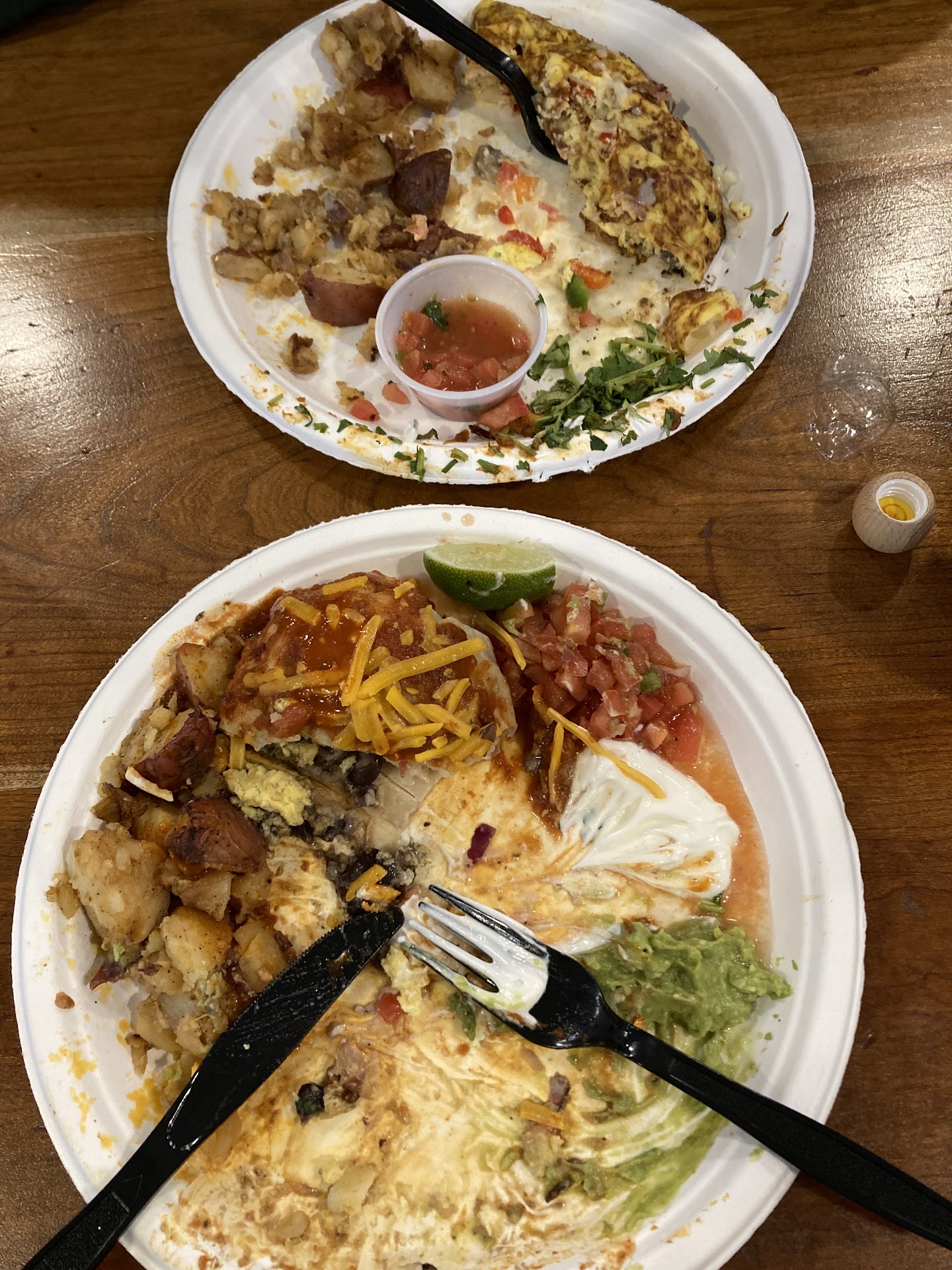 But since its only 1/2 sized and refills take so dang long, you IMMEDIATELY return to order another set of refills, wait in line again, get the order placed, and return to your table to hurry some more bites of now-cold french toast. You head back to wait, standing of course the entire time since there are so many other people waiting at the counter for refills that takes 20 minutes so there's no place to sit. Eventually the next 1/2 sized orders are ready and you return to your table.