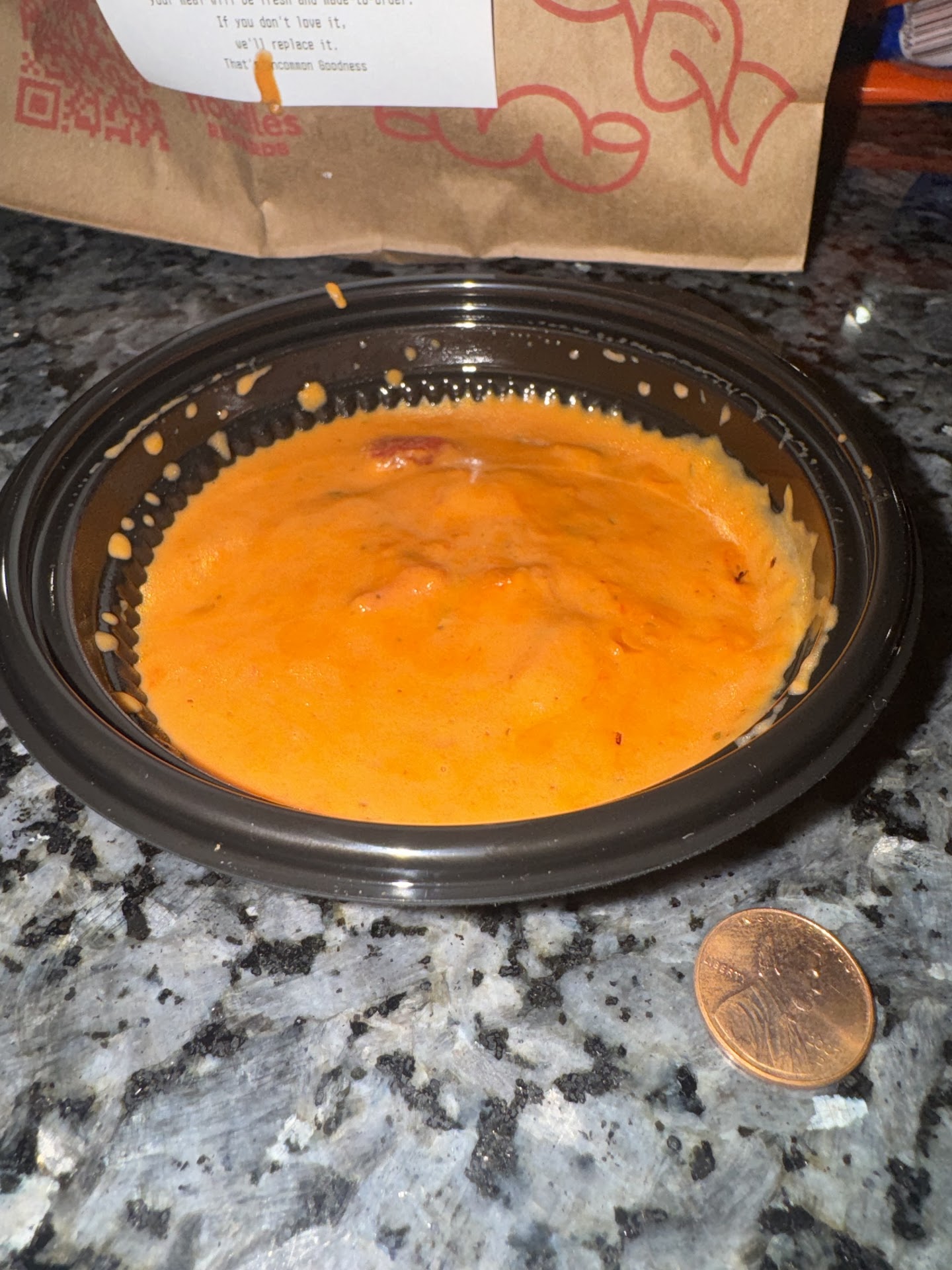 Read moreI order from Noodles and Company's quick pick up service online every once in a while as I work not too far from there. The food isn't bad, it is about what you would expect from a quick service pasta place. Mostly, I get the Med Salad with chicken pretty regularly, and it is good. It is a cold salad with lettuce and vegetables plus some cold pasta tossed in with a pretty tasty, if a little too thick, dressing. The only issue I have with this place is the consistency. Specifically, when I have ordered the salad (which runs about $12 after tax right now with the chicken added), the amount in the to-go bowl varies widely. A handful of times, I have gotten a reasonable or good amount while other times, like today, the bowl is maybe halfway full. Even if it was filled a bit more with the lettuce, I would feel like I am getting my money's worth. But, on days like today, I feel a little bit cheated.