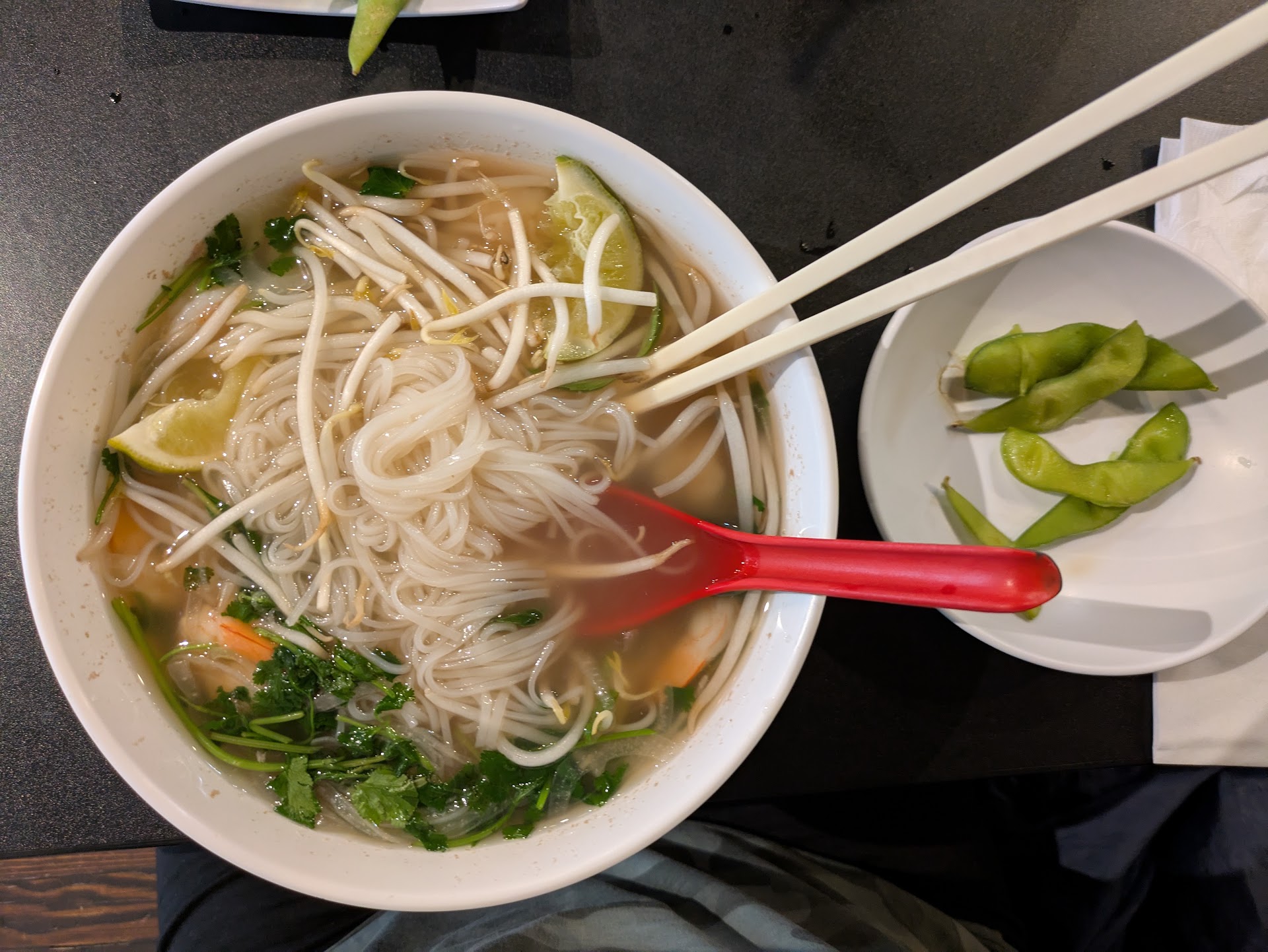 I eat a lot of pho, all over the country, northern & southern style. The pho was okay, broth was good, way too many noodles, and the veggies looked like someone bought a bag of pre made salad at the grocery store & poured it in. They were literally just shreds of lettuce, carrot, and the smallest broccoli florets I’ve ever seen. The gyoza were the best thing we ate.