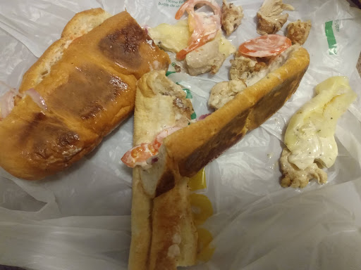 Read moreVery disappointed. Placed order pick up at 6:20pm saying it would be ready by 6:50pm. WE WAITED AN ENTIRE HOUR!! It finally said it was ready and so we went in to pick it up. It took 10 minutes to wait to even talk to the girl at the front AND they lied and hadn't even finished our order yet! We had to wait another 20 minutes to get our food. An hour and a half to make two sandwiches is RIDICULOUS. Irritating to also see one VERY SLOW girl doing everything by herself while there is another guy sitting on his phone in the back area switching between his phone and making bread. EW. That is against food handlers violation and should not be allowed in a restaurant! Phones are so dirty and I am disgusted that he was using the same hands to swipe and text on his phone as he did to make the bread. After an hour and a half, we finally received our food... but the disappointment did not stop there. My sandwich had this weird paste on it and I thought maybe it was melted cheese, but then I realized it wasn't cheese-- MY BREAD WAS DOUGHY. GROSS! Who wants to eat undercooked bread? Especially since I am pregnant! There were chunks of chicken fat in my sandwich larger than a nickle and I had to pick out and really observe each questionable bite. This was the one place I felt comfortable eating cause usually it is fresh, it is simple, and delicious... however, after our experience at this location, my husband and I do not want to ever go back and feel that we deserve compensation, if not a refund (since I ended up having to discard half of my uncooked fatty sandwich), for the poor quality of food and poor service. Please help resolve this and make...