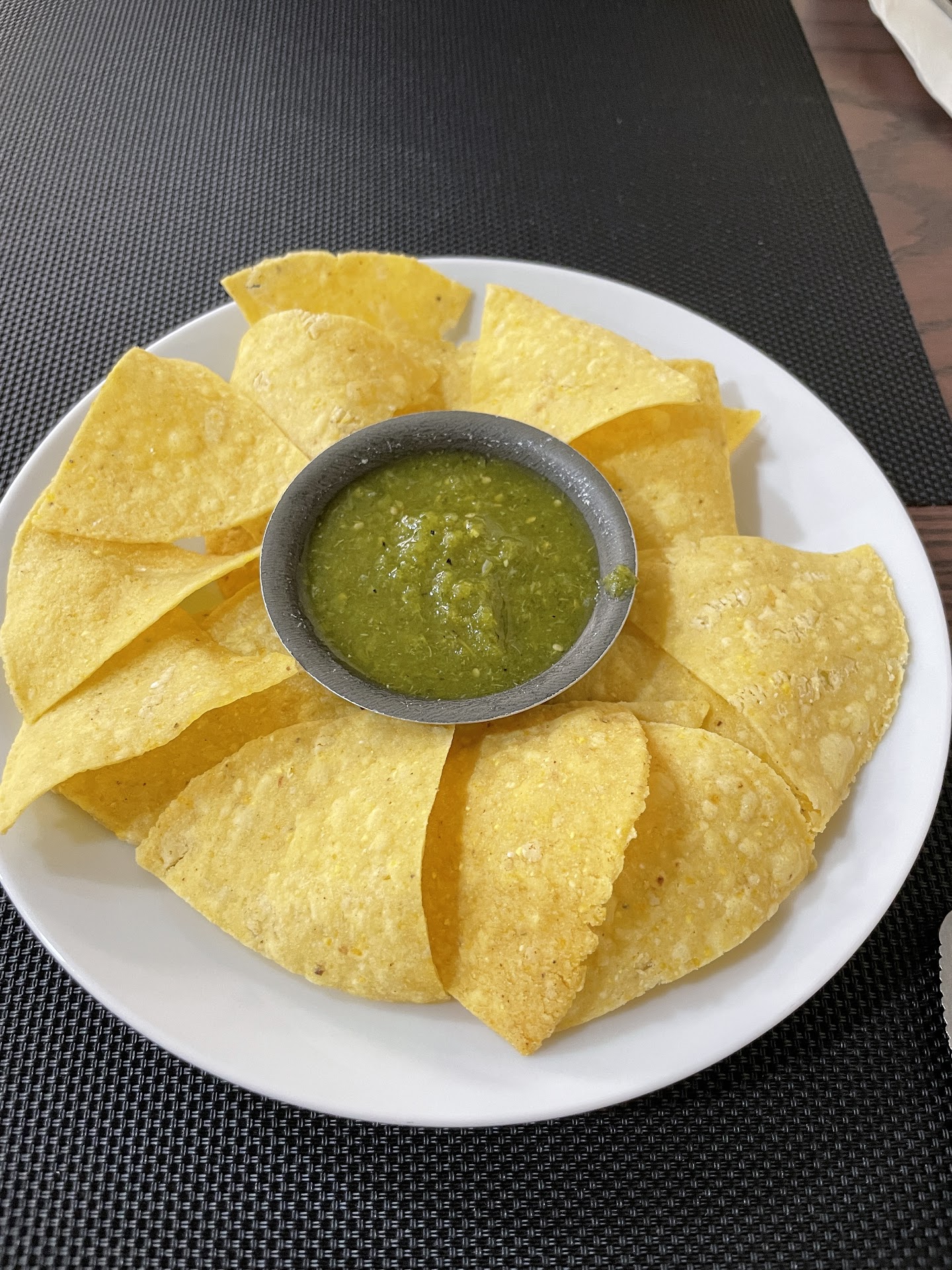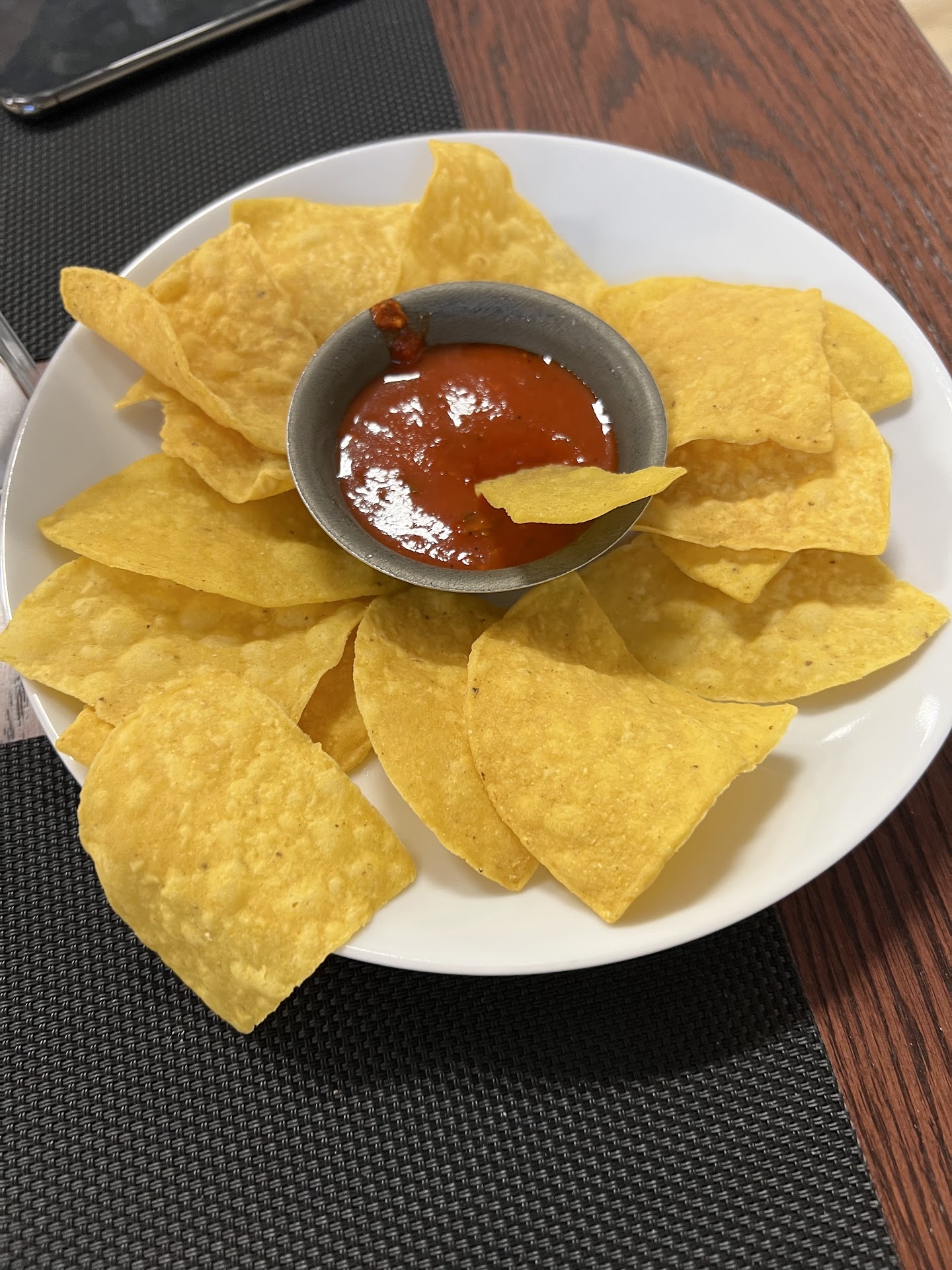 The chips and salsa was small for two people to share, plus the chips were tough! And, although they gave us more of the delicious salsa, they didn’t give us more chips.