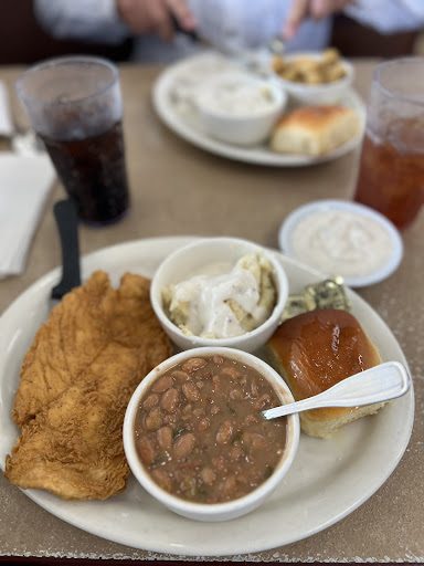 Read moreThe table hadn't been wiped off. Crumbs from the previous patron were still on the table. The window sill next to our booth had a layer of dust and crumbs all down the length of it. One server even swept up the floor with a broom while a couple was eating. This should never be done while people eat since dust and dirt can be swept up into someone's food. Most of the food was okay. (Nothing exceptional, but it wasn't expected to be.) The Chicken Fried Steak seemed to have been mass produced and processed like something you would find in a school cafeteria (perfectly shaped oval patty about 1/4-inch thick). Chicken Fried Chicken was pretty good. Mashed potatoes seemed fresh, not instant. Grilled shrimp was seasoned well. Onion rings were pretty good, but needed a little more seasoning. Rolls were dense, not fresh. My guest had a roll that was either dirty or beginning to mold. Fried okra was good. Gravy tasted like it may have come from a packet you mix together, like Shawnee Mills brand or similar. Overall, it was average. Service was good, attentive, and...