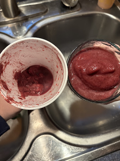 Picture on the left was how tropical smoothie blended it, picture on the right was after we had to...