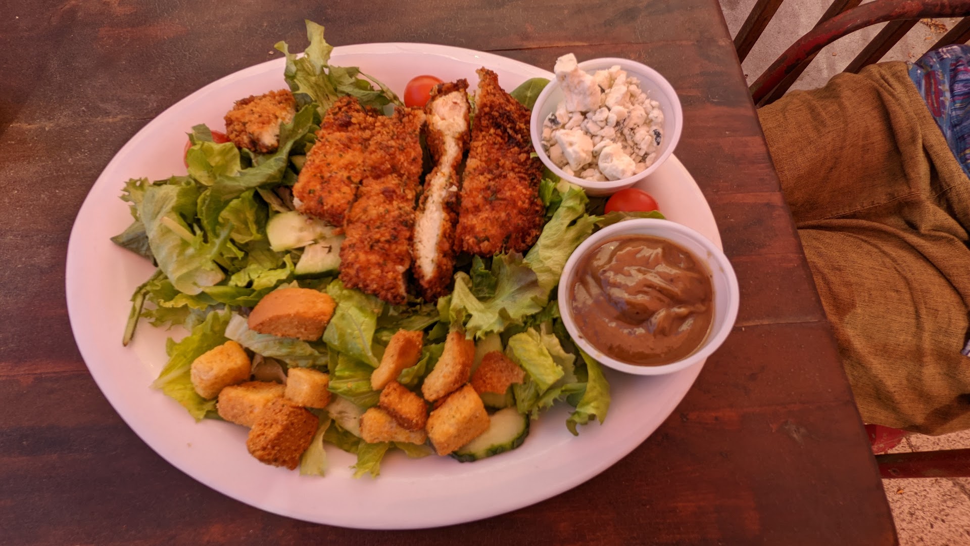 The food came out fast and service was amazing as he came by several times to check on us and brought refills and anything asked for, quickly. The decor is small town bar, and atmoshpere is loud. If you're looking for a quiet spot for date night, this isn't it. They had the juke box turned up way too loud. Get a real sound system that doesn't boom like a cheap 70's stereo.