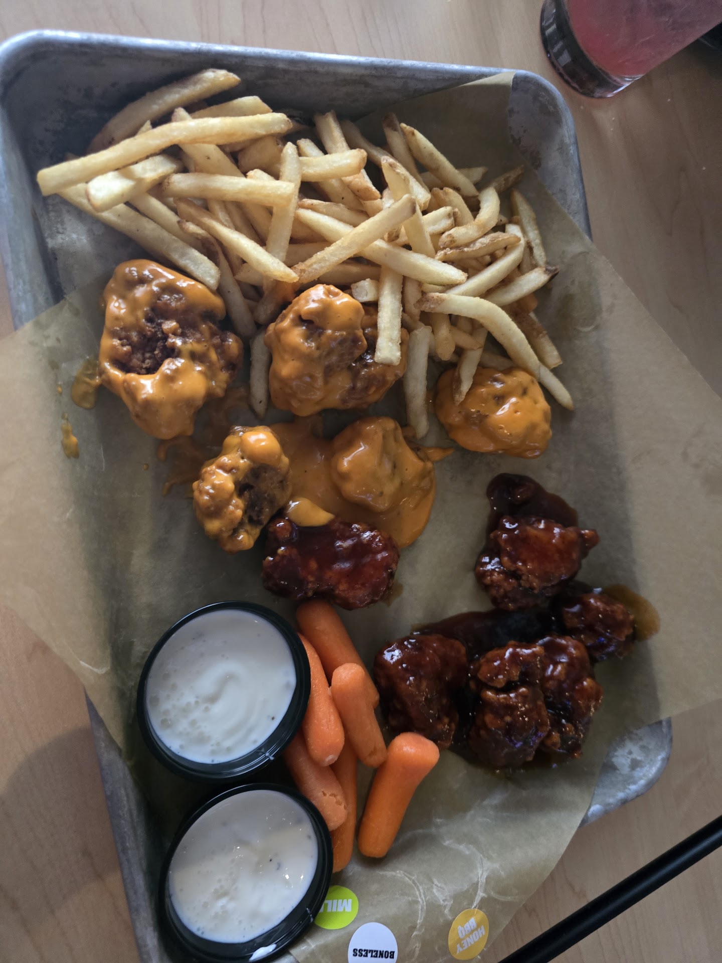 Read moreIf I could give less than one star I would! Went to have dinner here with my friend. It was really loud which didn't matter it is like a sports bar. We were seated quickly ordered our drinks and a appetizer. The drinks come over and everything was going smooth our appetizer took sometime to show the server was nice said there was a mix up understandable they were a little busy. However thats where things took a turn and not for the better. My friends food shows up and his fries are cold the burger is luke warm. After about 10 minutes my food still has not shown up. I'm usually understanding. However, the server goes to check on my food and brings out cold wings. COLD! That is where my understanding ends! If the food would have been hot I would have been totally willing to forget about the mix up with the appetizer, and my food, but no the wings were cold clear through them. Cold food for my friend as well. Which made the situation worse. I sent the wings back and asked for them to be heated at minimum, and if I could get my fries that I ordered that would be great. My friend ate the cold food well at least the burger. So the server brings out another plate of wings and they are warmer but not hot, and fries, which were hotter than the wings. At this point I have lost my appetite and no longer want the food that I ordered but the server had already brought it out to me and I am not that mean. They did not offer a discount or anything. Not that I was looking for a discount or free food but come on not even a offer and at the end the server went through his speech about there rewards something or other I was so disappointed I didn'teven listen to it. I still tipped the server a decent amount and all. But I do not think I will be returning here to have dinner or anything to eat any time soon sad because I used to like this place. Definitely has gone...