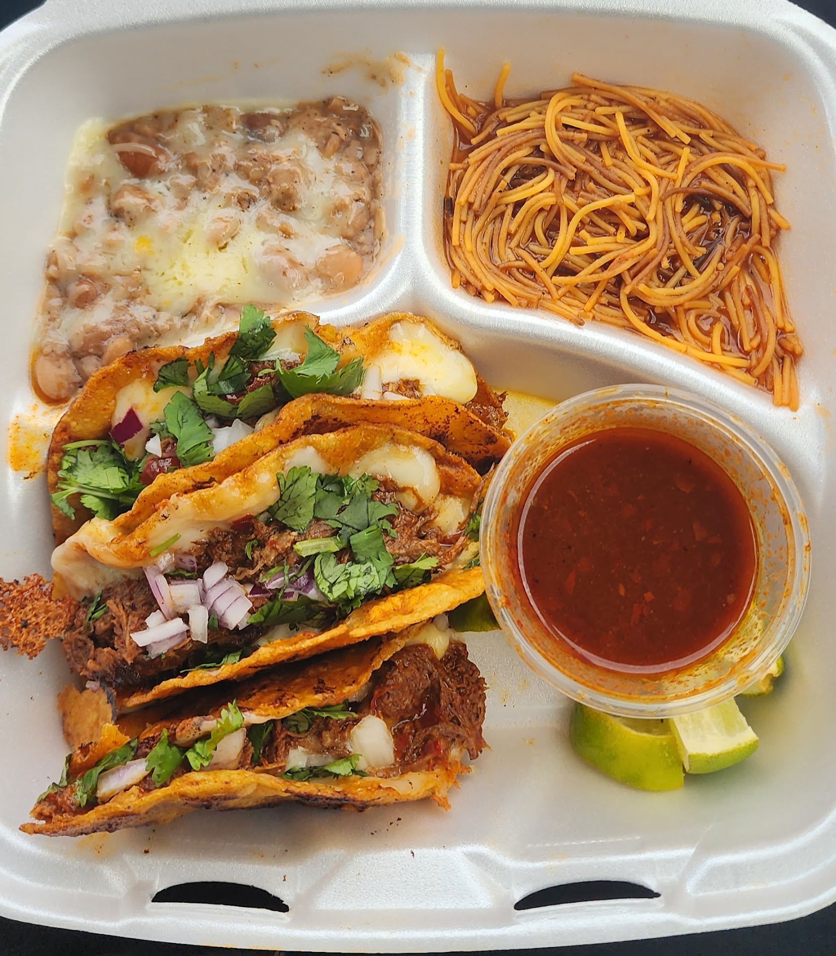 EVERYTHING my coworkers and I have tried is awesome!!! Birria tacos, tacos on corn and white, chicken flautas with green, posole, chicken tejanas with red, chorizo breakfast burritos, french toast with fresh strawberries and bananas..... and so on..... straight authentic home kitchen style cooking with every single plate!!! oh and today we discovered her elote!! Yesss!! Just try this place you will be so thankful you did!!! Yes it might be a little hectic when you go during one of their rushes, or it might take you a few tries to get them on the phone to place an order, or it might be a longer wait than you had anticipated, but it's because they are preparing each plate fresh and handling it all and those who realize this place and it's greatness keep coming back!! Good portions and good prices! If you're in a rush to eat or on a lunch break, call ahead of time or when you call last-minute for a quick pick up, just ask, they will be honest and let you know how many orders are ahead of yours and how long it will be for yours to be ready. Its sooo worth it!!! The 404 thanks you guys for being awesome and for sharing your love for cooking, we are lucky to have your little...