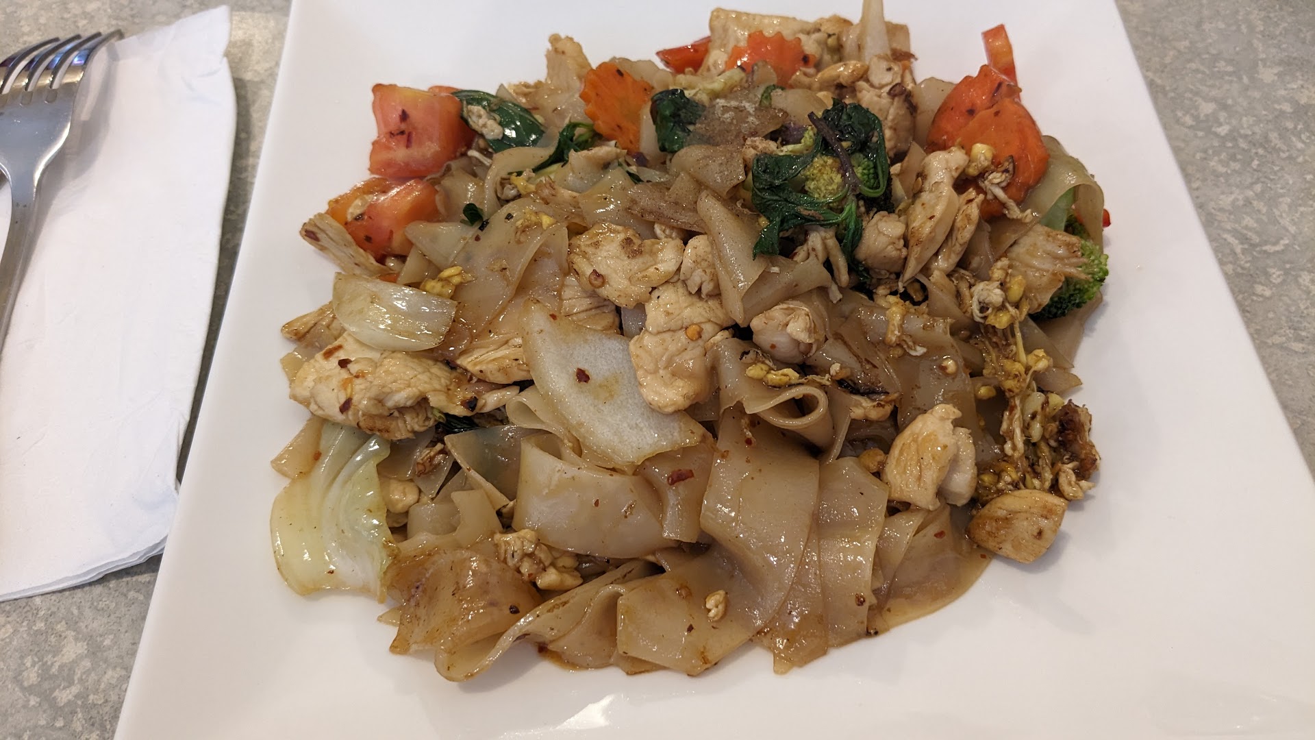 Ā Ā Ā Read moreI stopped in when I saw this new place has opened up and thought I'd try having lunch. I only had 40 minutes so I asked them if it would be quick and they said it would because they didn't have anyone ahead of me. I looked at the menu and prices were pretty much the norm perhaps a little less than similar places I've been to. When I got my to go order of chicken pad Thai after waiting only about 10 minutes, I thought it wasn't very much considering the size of the box but once I opened it up and started eating it it was actually plenty. They also asked me how hot I wanted it and I did tell them hot because I like spicy food. In the box they had everything together except for the peanuts which were in a separate sealed container which was good but I'm not allergic and after squeezing a generous portion of juicy lime juice all over it I tried it out. The first bite told me everything I needed to know and I devoured the rest. It was truly delicious down to the last bite and I definitely recommend supporting this local small business. I'm excited to go back with the whole family soon and if everything else on the menu is half as good as that pad thai it will be well...