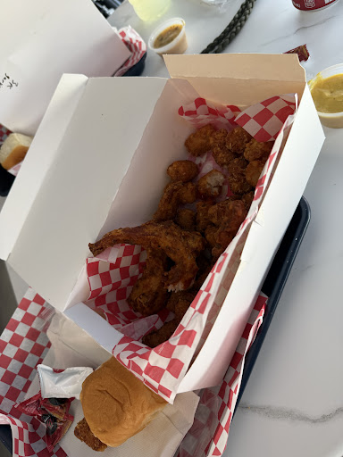 Read moreAlicia and Alic were friendly and helpful with our decision making. They were excited about all of the menu items. The chickpea salad is fresh with delicious vegetables and dressing. The macaroni salad is very creamy with a refreshing change from traditional versions. This version has a touch of spice for a slight back ground note, the shreds of cheese partner the macaroni well. The sauce does a great job bringing all of the ingredients together. The macaroni bites sounded too good to pass up, and boy did they supercede expectations. Lots of different refreshments to wash your meal down. The chicken has a delicious well seasoned, buttery bite. The chicken is moist and delicious making you want more. I recommend the garlic parmesan, and honey mustard dip. Very delicious. The Musso sandwich comes with two thighs, with lettuce, Musso chili, onion, a fantastic sauce, on a soft seeded bun. The strawberry cream cheese pies are a fantastic treat to finish off the meal. We were very pleased with the meal, staff interaction, the quality and quantity of the food. Great place to go. Happy to have...