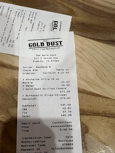 I hadn't been to the Gold Dust for about 7+ years, and it was HORRIBLE!! First of all, when we got there we waited approximately 15 to 20 minutes before we were even approached and asked for drinks, we were not giving menus, and then our waitress came and asked us if we were ready to order. Well, how can we order if we do not have menus!? So secondly, we waited another at least 20 minutes for our drinks to arrive, I ordered coffee and when our waitress brought all the drinks she did not bring my coffee I waited approximately 7 minutes, and then went and got a coffee cup from the bar and poured my own coffee! When our food arrived, I had ordered the soup and grilled cheese, and what I remembered the most about the gold dust was the potato soup. Well, what a disappointment that was it was lukewarm at best, and my grilled cheese sandwich was cold. We had ordered some cauliflower for an appetizer and it was horrible the amount of seasoning that was on there was just ridiculous, the girls with me ordered a basket of fries because hamburgers do not come with fries over there nowadays so which was very disheartening as much as you pay for a burger that was mediocre at best. The seasoning on the curly fries was so bad that the girls ate, maybe five fries from the entire basket. One of the waitresses who we later found out was the manager came storming from the bar to the kitchen which we were seated very close to the kitchen hollering about her customers come first and something I don't know and she appeared to look directly at our table as she was stating that. Needless to say, we were pretty upset that she appeared to have been directing her statements at us after all of the problems that we had already had. She never once before her hollering about her customers coming first, did she even come to apologize or try to make things right with the issues with the food and I thought that was a little unprofessional as far as a management position goes. She tried to offer us a gift card to make up for it, and we told her that that was not acceptable because we would not be returning ever! She did ultimately wind up comping our order, which we were grateful for. However, it was really disappointing to look forward to something that you remember and it being totally disgusting. The only thing that I would say is get it...