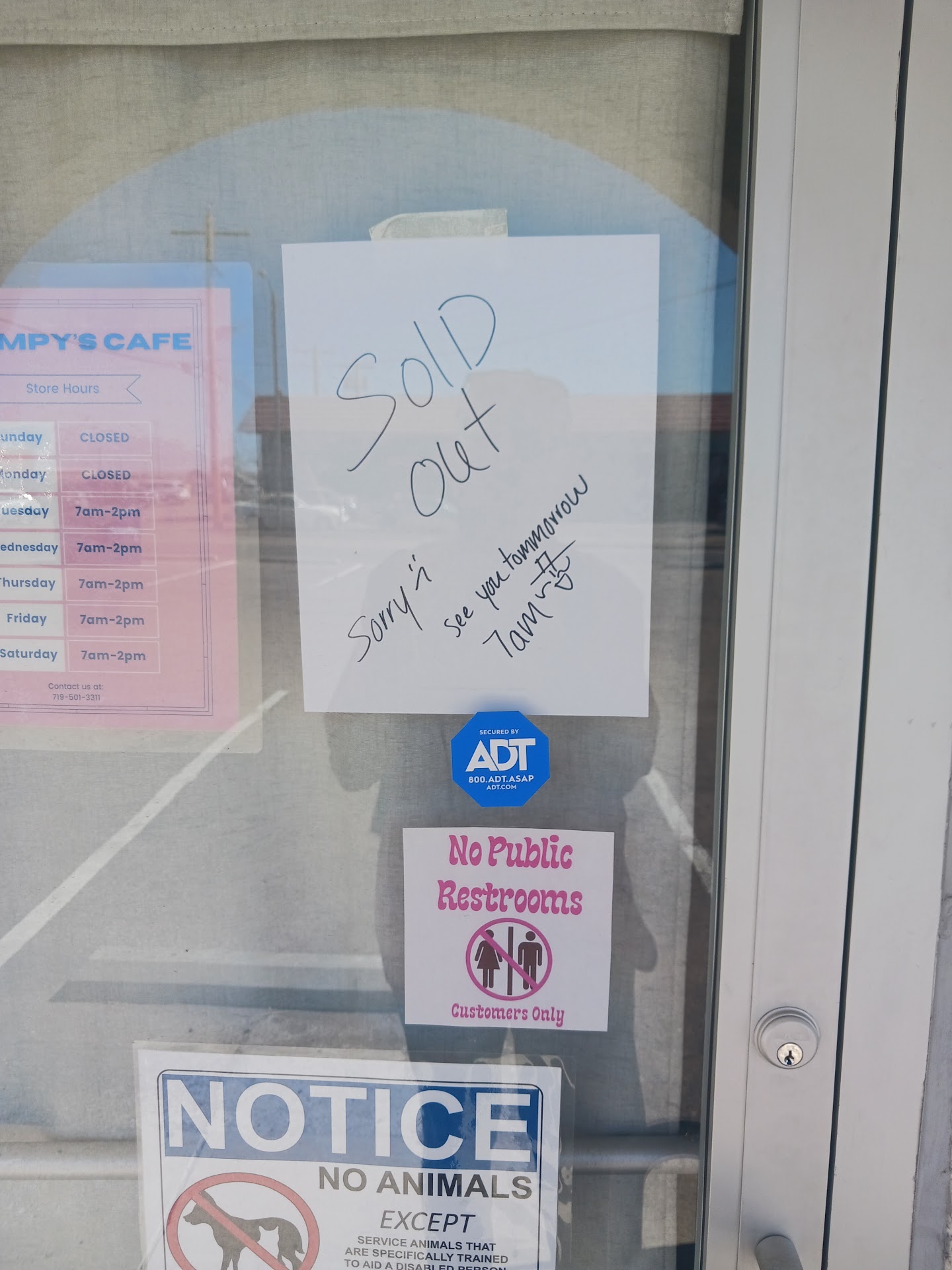 Excited to check the place out today and took a walk from Mineral Palace Park to the location expecting to get there a little bit before 1:00 p.m. enough time before they close according to their posted business hours at 2:00 p.m. ... and here we go. Apparently didn't even have any coffee left or any single thing? I have a career of managing large scale food and beverage operations and I've also been a small business owner two different restaurants and the rule of thumb is - if you're going to be in business.. keep your posted hours. Don't open late. In fact don't even open early. It gives people the wrong idea - and certainly don't close before your posted closing time unless it's an emergency. Not a good message as far as considering your customer base or how you're organized as a viable business.