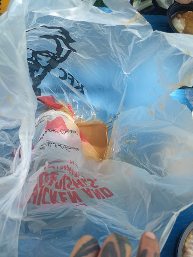 Read moreUpon arrival there we're at least 6 people waiting on orders, an elderly woman at the register then me next in line. After about 5 minutes it was my turn to order. I told the lady at the register my order of 2 #6s to go, but as I was telling her she left the register to help the one other person working the front line and seemed to have completely forgotten that there was a now growing line she just walked away from. I know things can get hectic in the fast food industry but just walking away from a customer in the middle of providing service isn't acceptable in any line of work. When she finally got back from micro managing we had to repeat our order (not a big deal, I'd forget an order if I walked away in the middle of it as well) and wait 10 more minutes for a total of 6 tenders, 2 bisquits and 2 prepared servings of mashed potatoes, during the wait I noticed that not one employee including the one plating orders was wearing gloves and was alternating between using the keyboards for the computer and running thru doors to the lobby to give customers food they didn't receive when they we're told their order was ready. Also finding a table to wait at that wasn't covered in empty honey packets and breading was next to impossible. Food quality 7/10 Customer service 3/10 Cleanliness 3/10