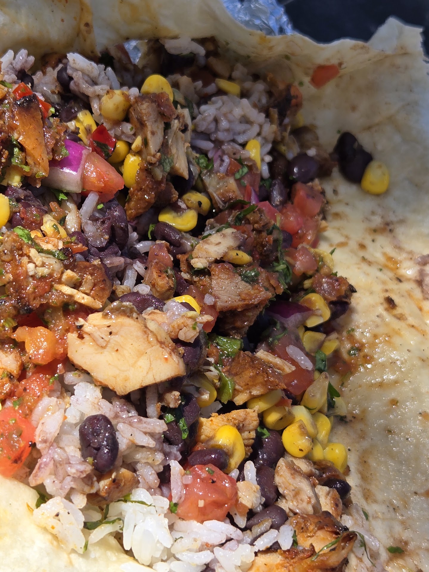 The chicken meat was very old, cold, and burnt. The lettuce was wilted. The Pico was different. The white rice was bland. The tortilla was not soft or pliable and kept falling apart. There was just no flavor except for the burnt chicken pieces which I had to spit out several times. They probably should have taken time for proper training before opening that location. Even the cashier was clueless but what's worse is the unapologetic attitude from the manager. Yikes.