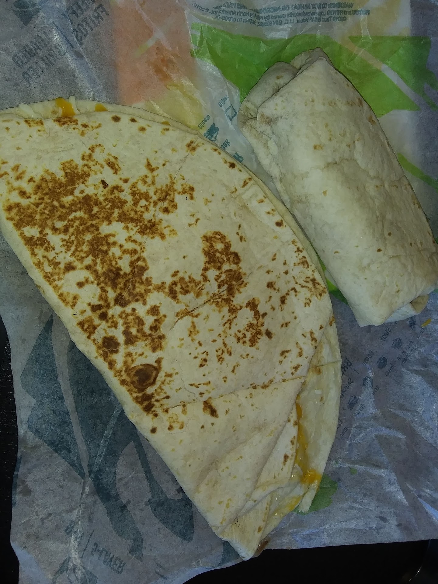 Read moreArrived 12/01/18 1:42 PM. Wife and I went straight to restroom to wash or hands. Mens was in use at time women's restroom the door lock was not working. So we went and ordered two soft tacos and two burritos. The soda fountain was somewhat dirty but got our drinks and food order. Trying to find a table that was clean was a task.I finally wiped off table myself and sit down . Opened the soft tacos first and mine wasn't to bad but wifes was oily. It was dripping like the bottom of the barrel spoonful. Next we dug into the burritos and what a disappointment. Burritos was lacking ,I mean if your going to sell a product at least give the customer their monies worth. We ripped about half the taco shell off that got throwed away. In my opinion I have visited many Taco Bells in the past but this store needs help. The floors were also messy. There is handicap ramp and parking for RV trailer but semi parking would be best at the K Mart parking lot. . Wasn't very satisfied in all so I would think twice before revisiting again .