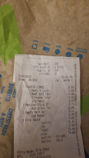 Worst Taco Bell location in town. I went inside to order and had to order off of the kiosk, which I don't mind, but there was no one at the counter to take anyone's order, and several were waiting to order before I even walked in.