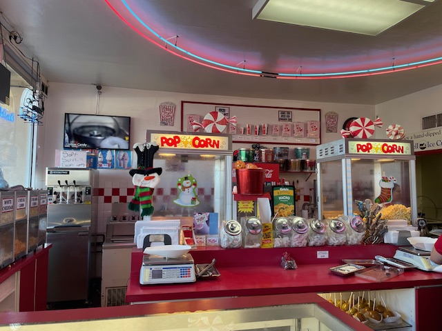 Read moreThis is just a little hole in the wall ice cream parlor that also serves different types of candy and flavored popcorn. We tried the cinnamon popcorn and it was spicy and sticky but tasty. We had the cotton candy milkshake which was also delicious but gone in a second because it was so light and airy. Everything was expensive. I try to support local mom and pop restaurants and eateries but at those prices I won't be frequenting often. It could also be a lot cleaner inside and there could be more space for customers. It wasn't a magical shopping experience. Looking at all the different types of candy. It was more like a pick, what you want and then wait around forever crammed into a tiny waiting area with everybody else because it took forever for them to scoop the ice cream and then mix it into...
