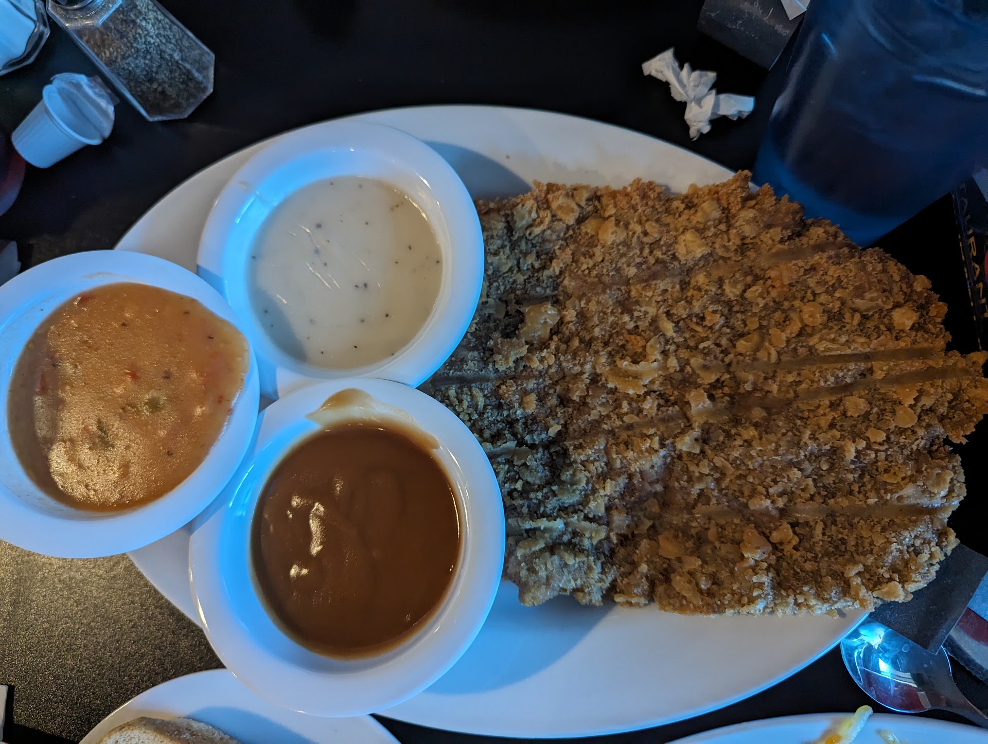 Read moreYou can hardly tell this is a restaurant and I was a little suspicious at first upon entering but they have great food. They're very accommodating as well. The owner is friendly and so is the waitress. This is hands down the best chicken fried steak in town. It was tender yet crunchy and well seasoned. It comes with one or all of the three sauces at your request: a white gravy, a brown gravy, or green chili and they are all spectacular, especially the green chili, which had the perfect amount of spice to leave your mouth with that good burn. They even make a green chili pancake that is not on the menu yet but it is outstanding as well. In fact, the pancake batter alone is reminiscent of what grandma used to make and not what is now found at chain pancake houses. Even the simplest of things like eggs over easy were cooked perfectly and were not rubbery like at other restaurants. The price of the items is what is most astounding. For $14 I ordered the chicken fried steak which came with two eggs, a plate of hash browns and two pieces of sourdough toast. The chicken fried steak was the size of its own plate. I even took half of it home along with half of the toast because it was so good yet so filling. The ambiance of the restaurant could use a boost, but it is obvious that the owners are very hard-working and very good at cooking. They only serve breakfast on Saturdays and Sundays but it is something to look forward...