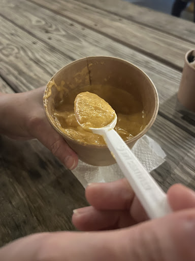Food- We got the cod fish fritter and the popcorn shrimp. The cod fish fritter was nice and crunchy and had flavor to it. It was a bit salty for me but we managed to still finish it. It was 1 piece and as big as my face! The popcorn shrimp was good too with lots of small baby shrimp with a cup of this sweet sauce on the side.