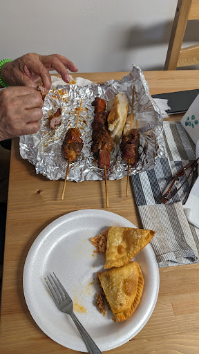I was swimming in the ocean a ways away from my hotel and ended up injured on some rocks. I limped out of the ocean and found this restaurant. Despite my dripping, pathetic state, the 2 men there were very kind. They let me use their phone, gave me ice for my ankle, and were reassuring that it was OK to sit there a while until my husband could pick me up. I had the pleasure of sitting out by the grill and observing their efficient, friendly service, and I enjoyed watching the various birds in the natural area next to the picnic tables. The sights and smells of the grilled chicken and pork were awesome. I can see why this is a favorite among locals and tourists. I look forward to stopping in for some pinchos and bread next time I'm in Puerto Rico. Thank you very much you guys! I will always remember...
