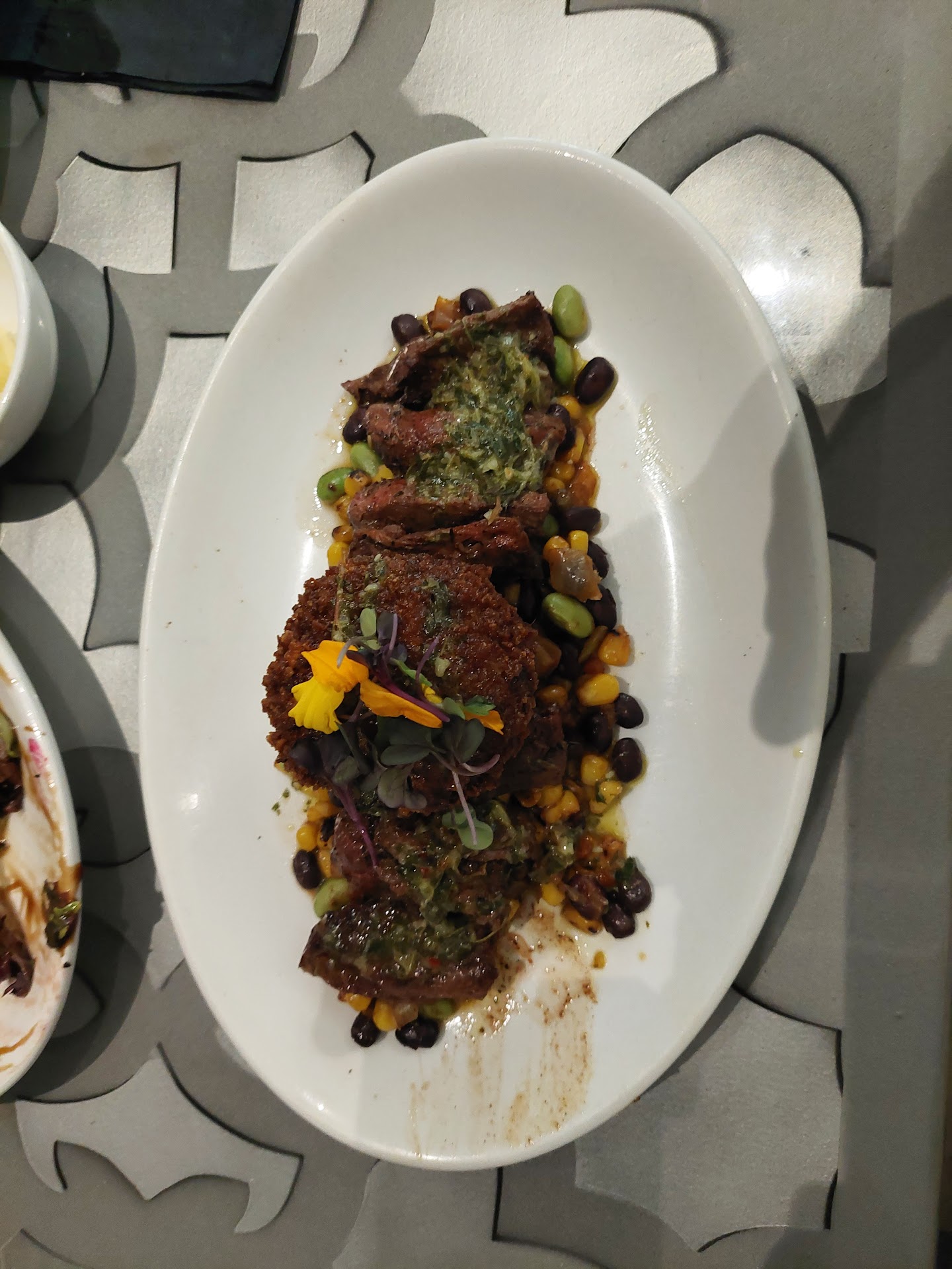 Todayâs Christmas Dinner was beyond and absolute and utter disappointment! Service was beyond horrible. Our server never checked on us, never refilled our water and took over 30 minutes to get our drinks from the bar (watched the server enter our drink order after we asked for it, again). Finally, after waiting for over an hour and 15 minutes for our mealâŚI order the Seafood Trio, which was supposed to be Lobster, Scallops and Shrimp with fingerling potatoes and Brussels sprouts cook witj pork belly and my husband ordered the Stuffed Snapper with the same sides. HOWEVER, that is NOT what we got. The server sat my plate down and said âseafood trio?â and sat my husbandâs plate down, she didnât even repeat what he ordered because I donât think she knew what it was. I had NO lobster and the shrimp and scallops were so black/burnt, they were completely inedible. The side we received were the leftover ore-ida breakfast potatoes and the vegetable seemed to be something leftover from what they wouldâve used in omelette. The snapper was supposed to be crab stuffed. It was more like stuffing with minced crab slapped on top of the fish. This was COMPLETELY unacceptable!! For $125 per couple, are you kidding me?!?! I sent my food back and the meal was comped, as it shouldâve been. We were not the only table this happened to. We could overhear the floor manager and another server say âwell we canât help that we ran out of foodâ. How is that possible?!?! This seating was strictly reservation ONLY. They knew how many people would be eating. They should have ordered the correct amount of food. On top of, if your server cannot handle the small amount of people on a fixed menu, then hire someone else. Yes, i understand they worked on Christmas. But whenthe other server started trying to get sympathy from her remaining customers by talking trash about another customer that complained, that was EXTREMELY UNACCEPTABLE!! I cannot believe that I opted for coming here for a nice quiet and supposedly high end meal for Christmas!! You were not prepared by any means and should not have moved forward with this opening for Christmas. I will NEVER come back here again. Complete disregard for others during this beautiful holiday. I have to say, you completely ruined it for me. While we sat waiting to pay for our drinks (another 30 minute wait)âŚ.I cried at the tableâŚno server, no managerâŚNOTHING!!! If I could give a negative...