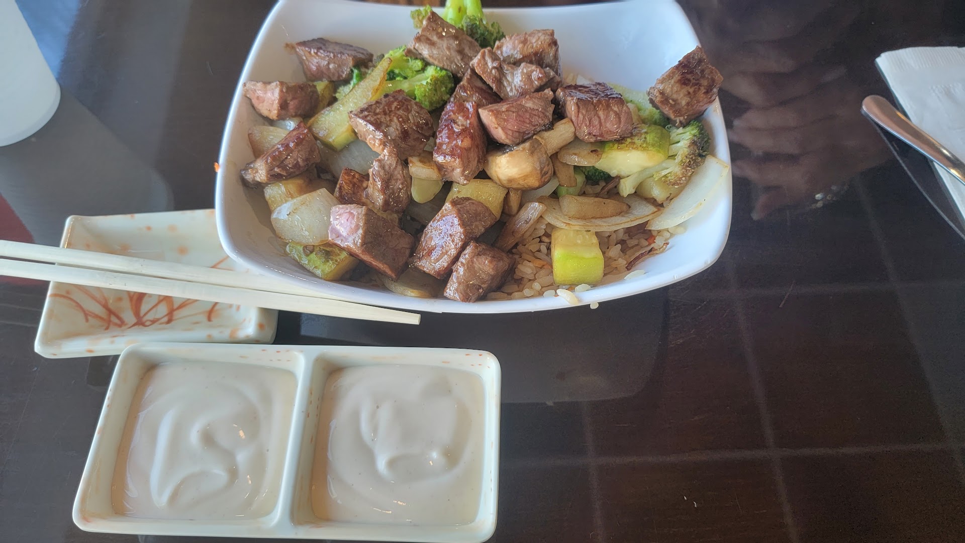 Seems like they make a pretty decent Yum Yum sauce and teriyaki sauce to complement the dishes. I had the steak and shrimp plate. The steak was cooked to medium and the shrimp was a little bit overdone; however, the fried rice that came with it was very good. I also had the yellow fin tuna maki; the tuna tasted fresh and the portion was generous.
