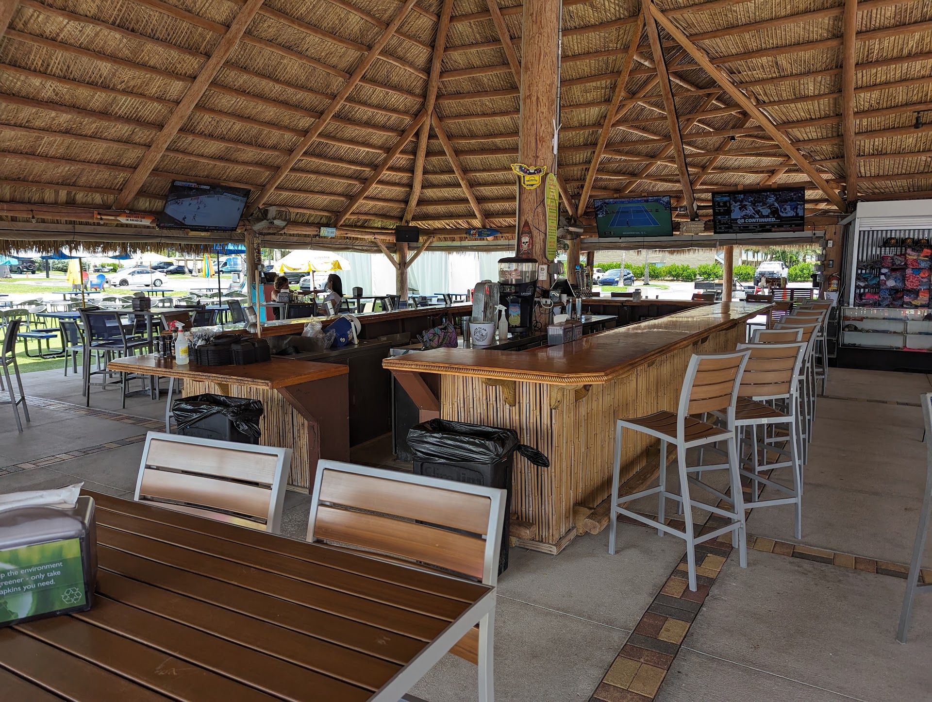 This was our first visit to TT's Tiki Bar, and it won't be our last. It was a hot, oppressive day in Punta Gorda with temps in the mid 90's but we decided to brave the outdoor experience of TT's. The tiki bar appears to be a new build, with relatively comfortable seating, including high tops, and seating at a large, nicely appointed bar. Thankfully that day, TT's had multiple fans operating, and there was a nice breeze off the Peace River, which can be seen from all locations at the bar. So, while temps were in the 90's, it was bearable, especially with a cold drink in hand.