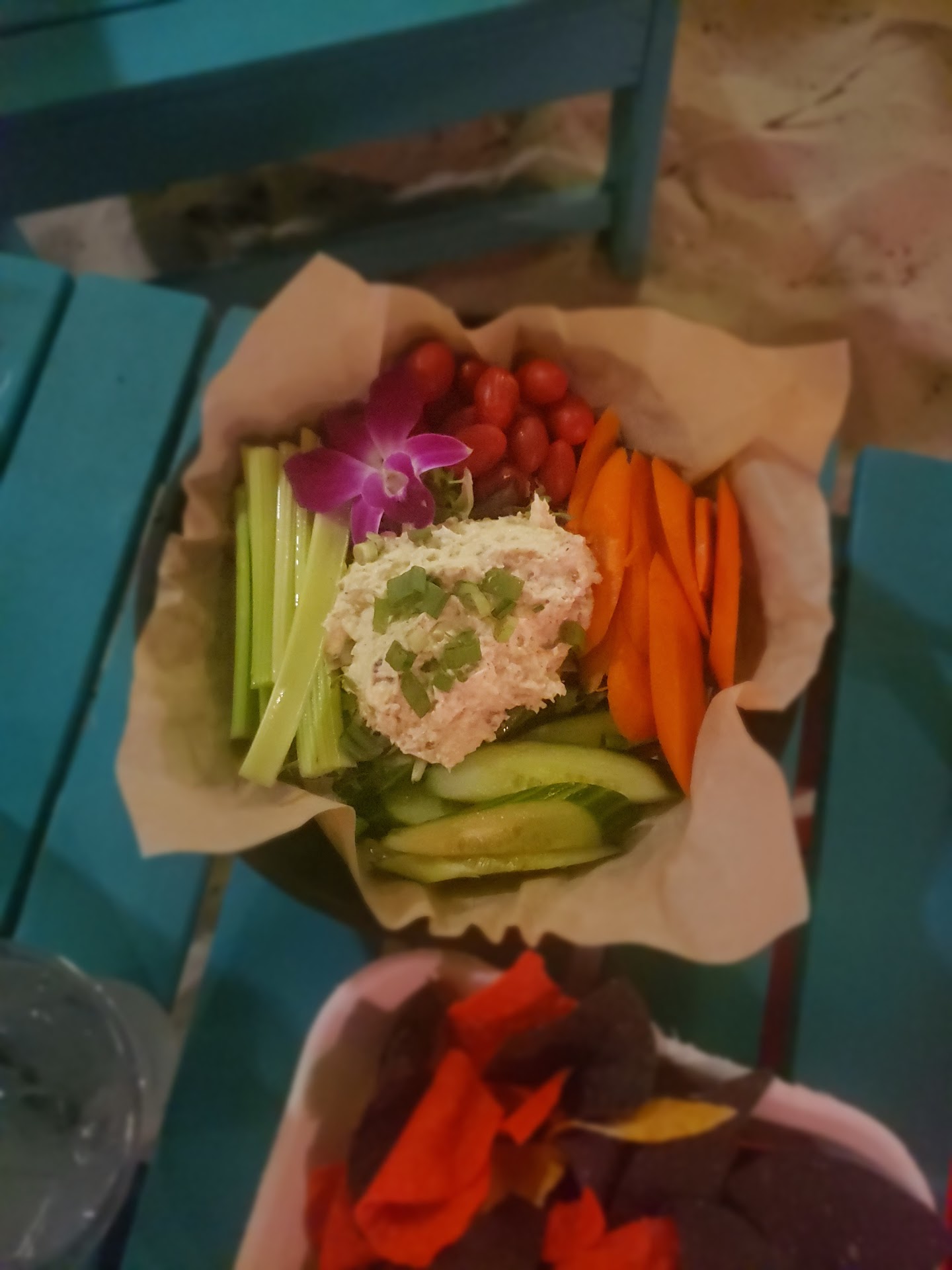 My partner's nachos came on a plate heaping with goodies. The chips were multicolored, and reasonably crisp considering they were below a heaping mound of Impossible Burger, cheese, beans, and something different, some fruit. The fruit added a subtle sweetness to the nachos, which was something new for us both. jalapeno peppers, along with tomatoes, onion and fruit made for an excellent meal. It could also be an appetizer for more than one. The nachos didn't come with sour cream or guacamole, so you may have to ask if that is your preference.