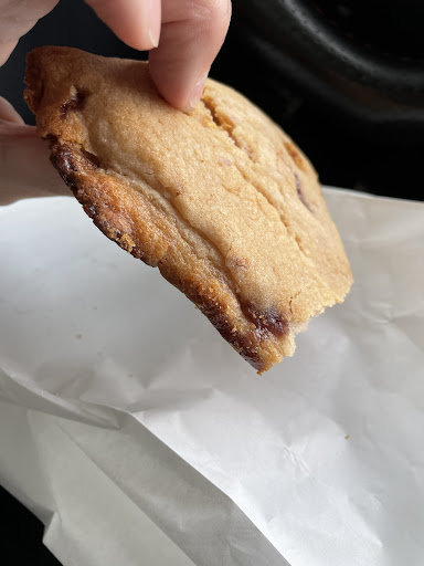We got a cookie sandwich and a “scone”. The cookie was inedible because it was just sugar, no flavor in the cookie or the sugar fluff filling. That went in the trash before we got back to the car.