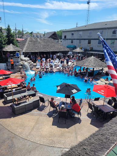 Right outside of a hotel, we found parking a golf cart to be limited parking. Expect to walk without shade. We couldn't stay long because we were on the hunt for food, first. But I absolutely loved the atmosphere when I walked in. The music was contemporary and fit the mood for day drinking at poolside. Extremely clean facility and pools with stair access for those who might have difficulty getting in and out of a swimming pool. There were multiple levels of bars which are stair access only. Although bar foods like hot dogs or pizza were minimal at certain times of day. They did not serve a lunch menu. Which is why we didn't stay.