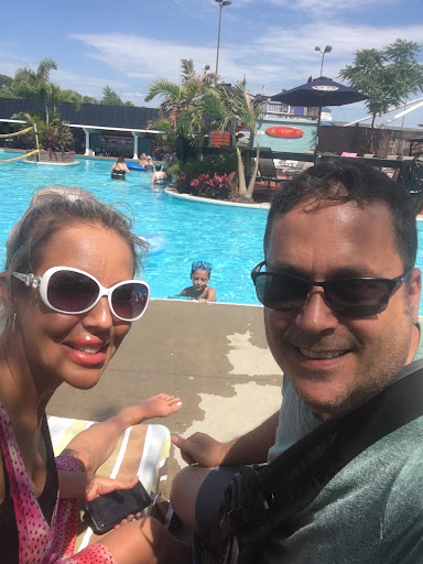 Assuming it's incredibly dated atmosphere and decor throughout from arcade to outdoor oasis is NOT intentional, it is what keeps it from earning higher ratings. Comes off as unclean in the arcade, bathrooms, and indoor lounge bar only for this reason as its not at all. Outside one will find spacious beach sand volleyball courts, ample seating, chairs and space enough to accommodate large masses of an all ages, all walks of life, and all backgrounds crowd! Dancing, DJ with a neat set up over one of the multi-tiered stone landings of a vast and sprawling pool with tons of fun stuff and activities all over to be entertained, that families with kids of all ages would have a blast any day of the week except the 21+ over only crowds that swarm the tropical paradise outside on Saturdays - the fantastic tropical libations made to order at the large tiki hut freely flow very potent cocktails so considering the value added, keep in mind the rowdiness of the Saturday crowd is best avoided by your munchkins who can enjoy themselves inside the attached Adventure Bay arcade where they may earn tickets for prizes, go bowling, even ride mechanical bulls and the token packages for play were very...