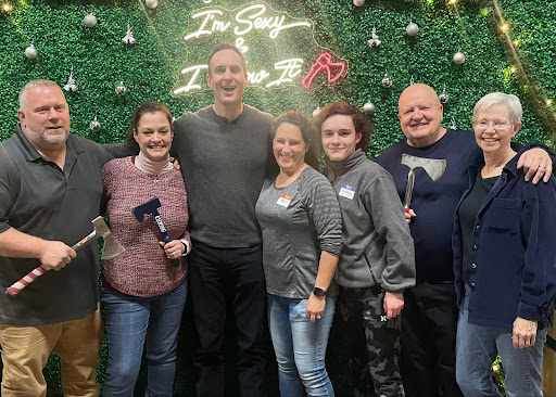 I brought a large group of teens for axe throwing and pizza. Overall, very fun. The kids enjoyed the axe throwing as well as the arcade games, pool table, and photo ops. A couple things to note: -For a large group, you can rent a room, but the minimum time you can book for is two hours. I found that this was a bit more time than we really needed, and it would be ideal if you could book for an hour and a half instead. -The pizza is delicious, but please keep in mind that these are significantly smaller than a standard pizza. I was prepared for that, but I definitely underestimated it, and ended up needing to order a lot more than I originally planned. Like to the tune of 16 pizzas for 21 people. Additionally, you are not able to order drinks by the pitcher for a large group, which I asked about but did not receive an answer on until I got there. I ended up having to buy 21 individual sodas, which added up. I was hoping to spend about $200 on food and drink, and it ended up being almost double that all told (almost $60 of that was just the sodas). Definitely something to keep in mind if going with a large group. -We went during the day, and I would definitely recommend that you do that and not go at night if you're bringing kids. Everything is very open, and you walk right through the bar area and active games of cornhole to get to the private room. I would think not very kid-friendly if people are drinking. -You guys should put tape on the floor or something to signal that there are cornhole lanes. We ended up walking right through an active game and annoying the people playing, because it's a big open space leading right to the party room, and there's nothing on the floor to warn you that you're walking through it.